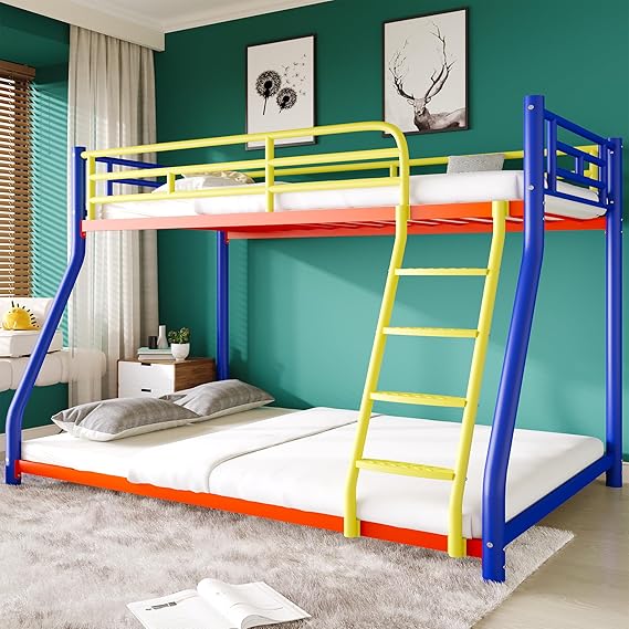 - Our Metal Bunk Bed is crafted from robust cold-rolled steel, ensuring exceptional durability and safety for a bearing weight capacity of up to 500 pounds. The combination of square and round metal frames, along with full-length guardrails, provides secure sleeping arrangements for your children.