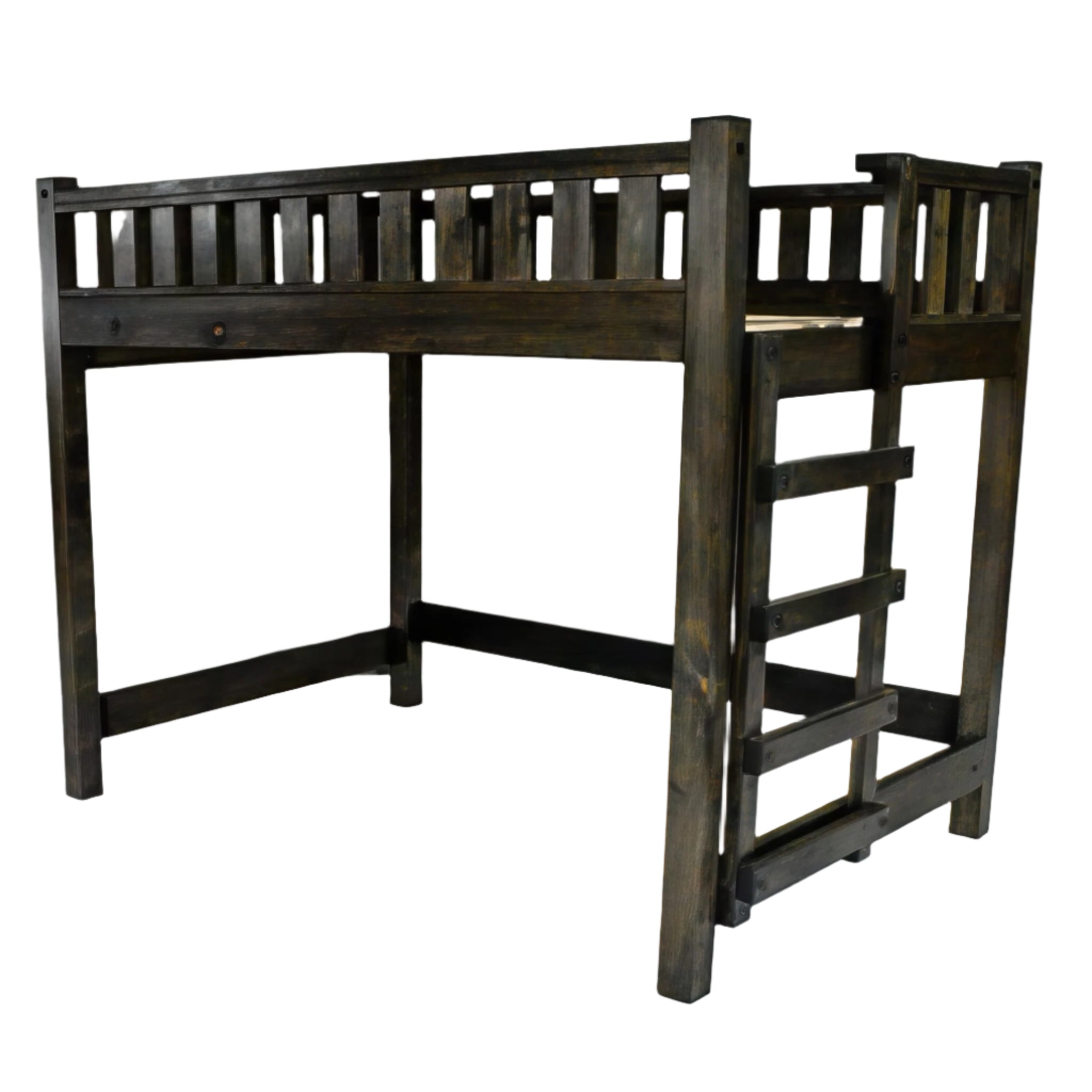 Wood Loft Bed Frame, Full Size - Rustic & Modern Style, Brown Finish, Adults, Kids