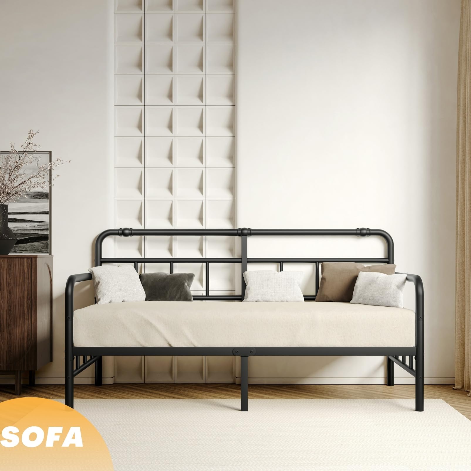 Twin Daybed Frame, Classic Day Bed Frame Twin Size with Headboard