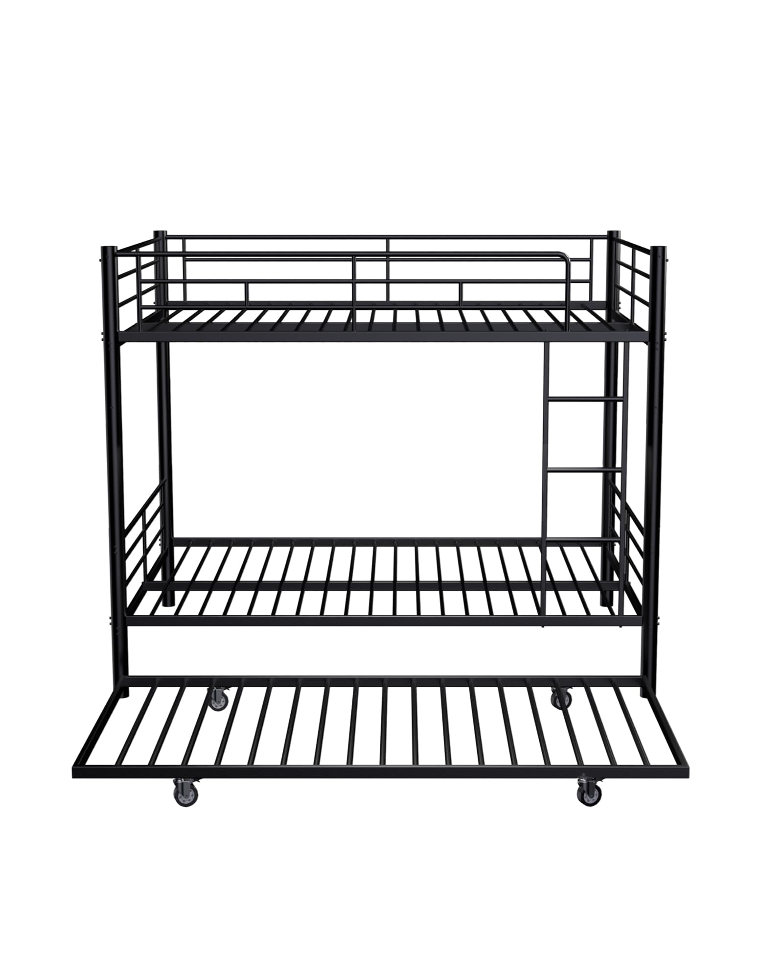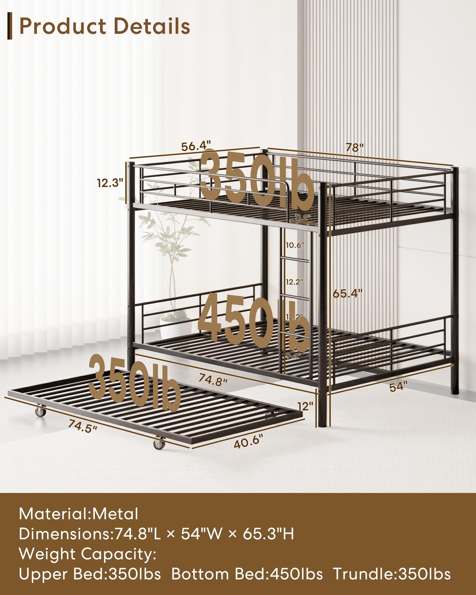 - Enhanced Safety & Heavy-Duty Support – Features 12" full-length guardrails to prevent falls and an anti-slip ladder for secure climbing. The reinforced metal frame supports up to 350 lbs (top bunk), 450 lbs (bottom bunk), and 350 lbs (trundle), ensuring safety for all ages.
