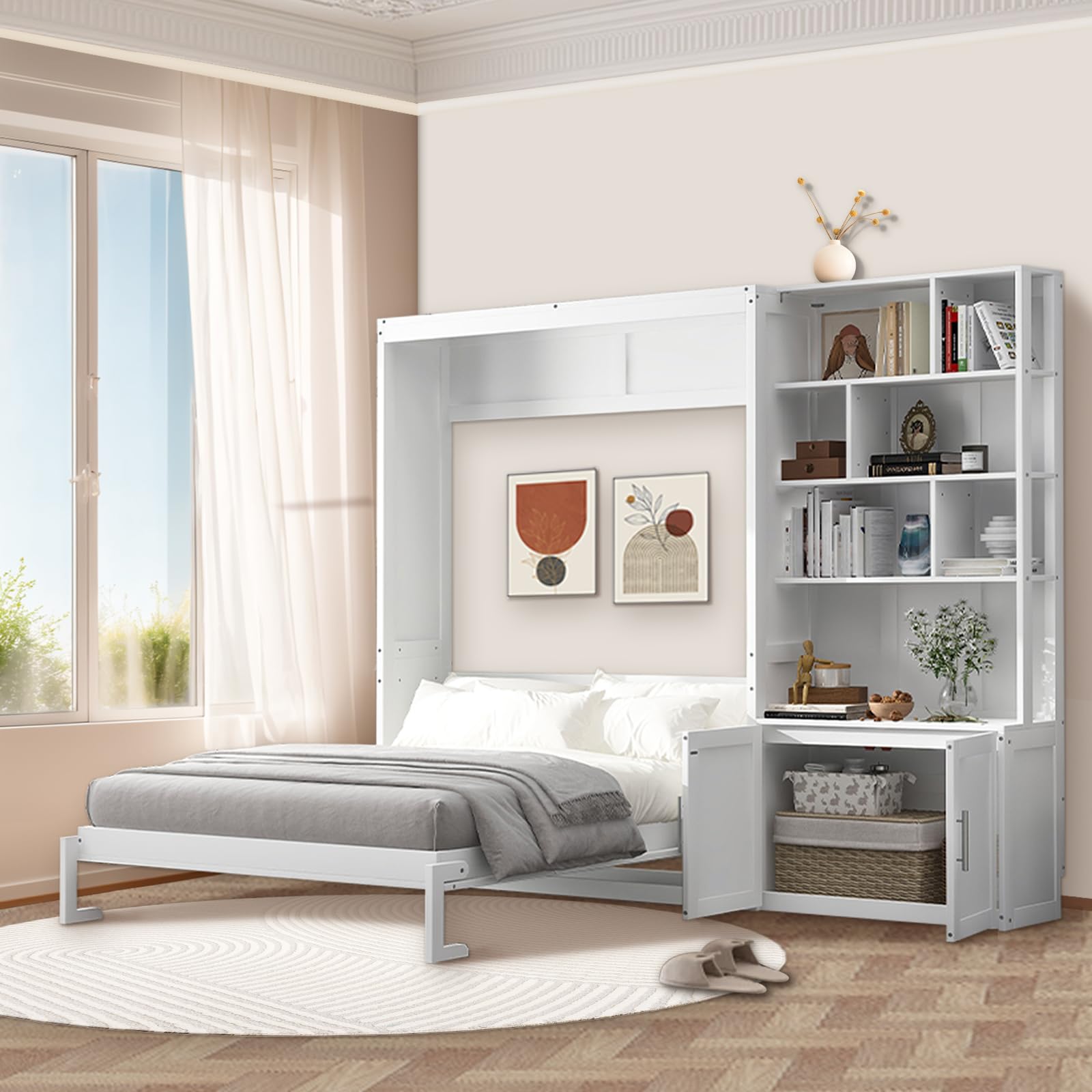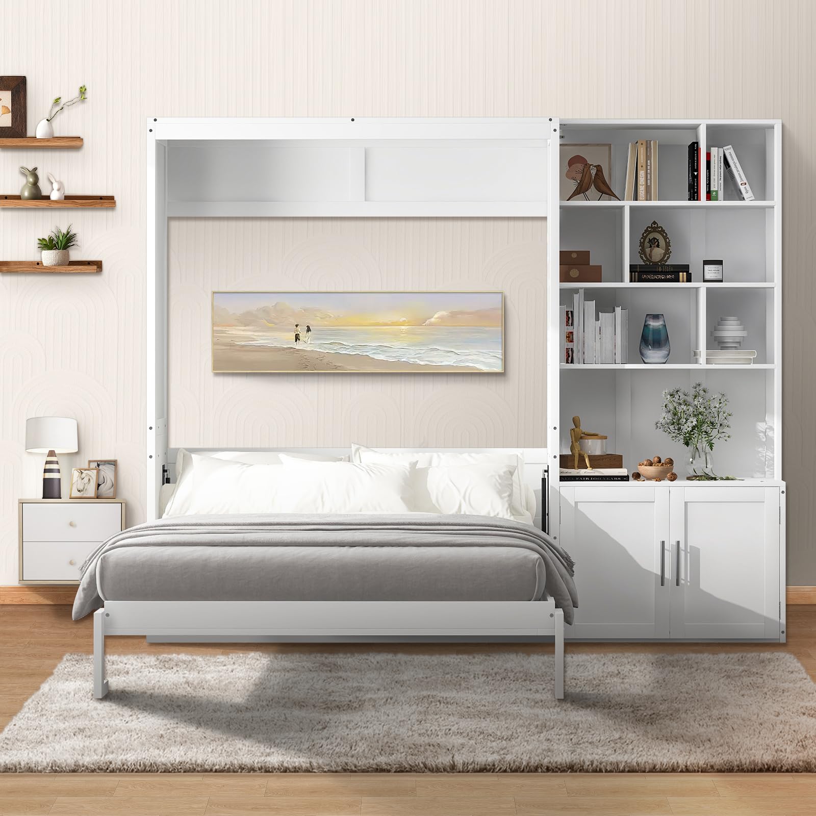 Full Size Murphy Bed, Wood Full Murphy Bed with Multiple Storage