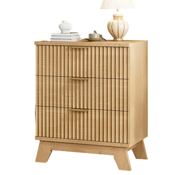 Fluted Nightstand, 24" Wide Side Table with 3 Large Storage Drawers