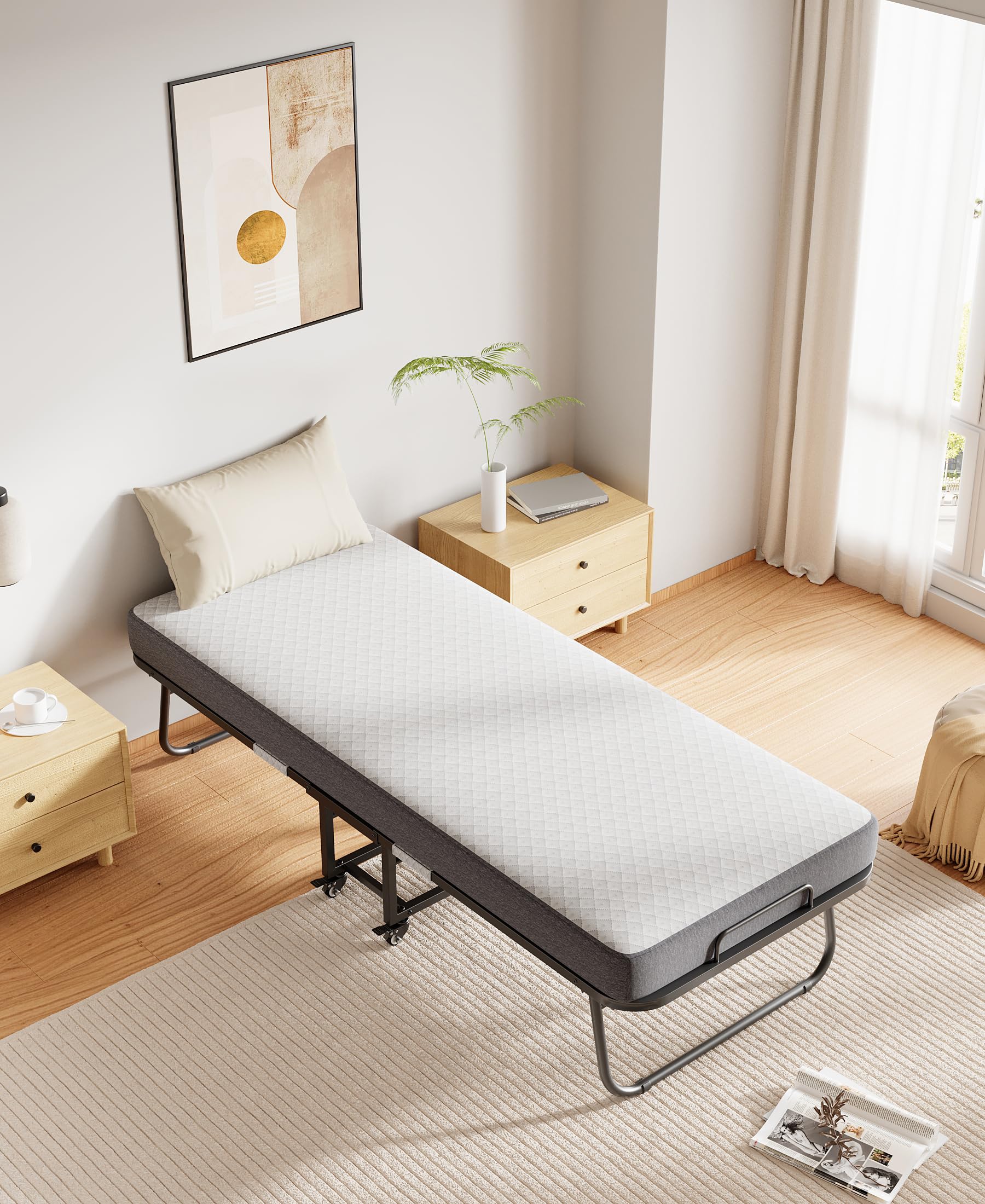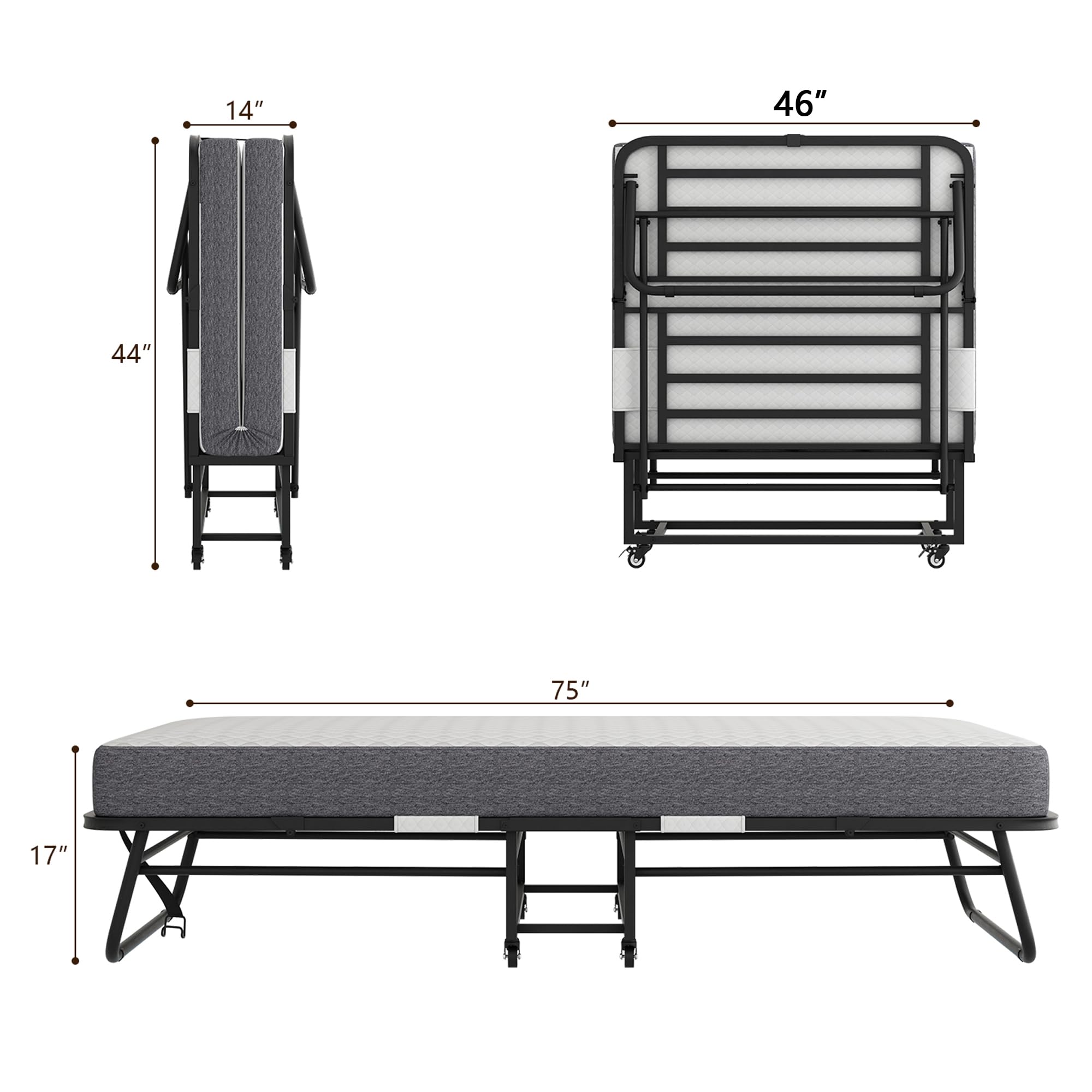 Bed with Mattress 75" x 46" Rollaway Guest Beds Portable Foldable