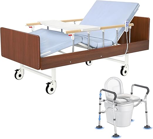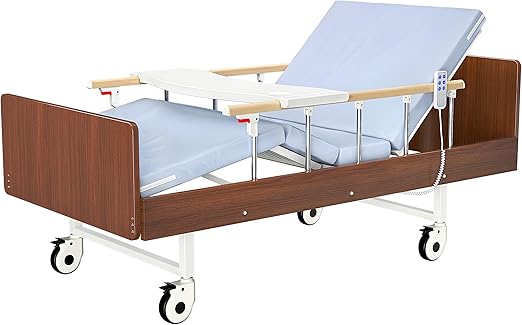 - It comes with a hidden guardrail, small table for in-bed activities, high-density sponge mattress, spare hand joystick that works in power outages, and large silent swivel casters for easy movement. It features a double insulated junction box for shock protection, and a durable, washable, and impact-resistant bed end panels.
