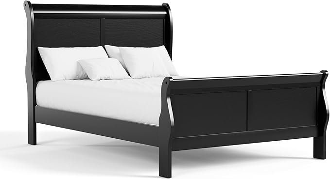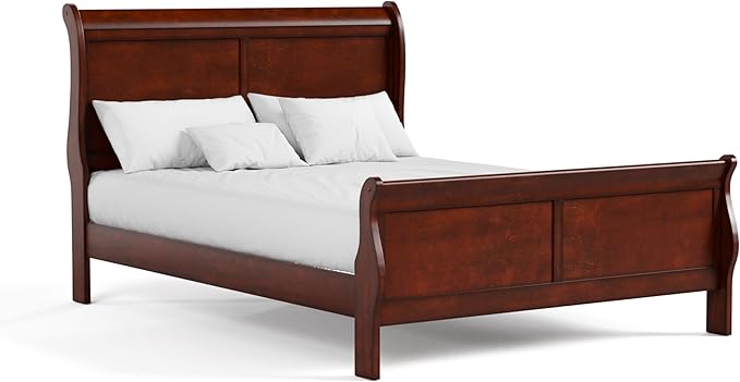 - MASTERFUL DETAILING: Crafted from solid wood with a premium wood veneer finish, our cherry bed frame features a sleigh bed silhouette and shaker panels on both headboard and footboard, offering timeless sophistication.
