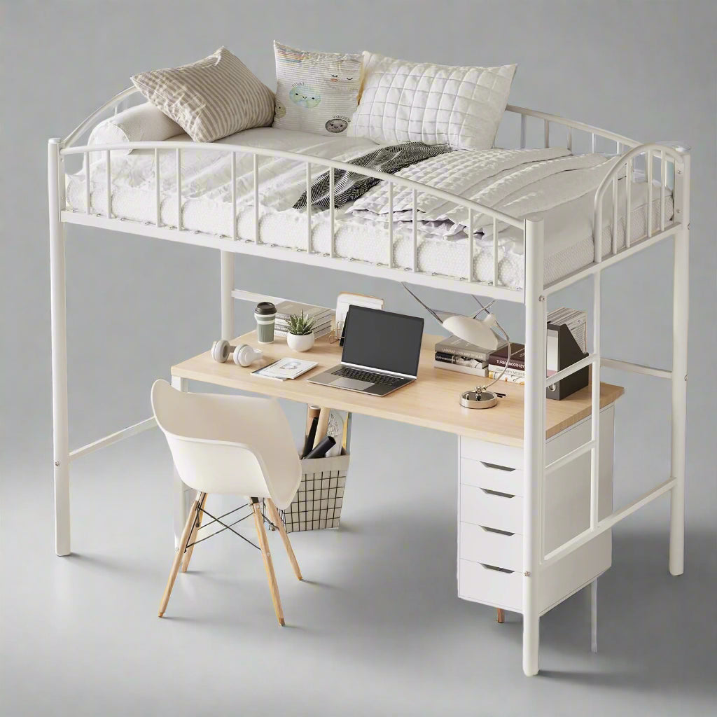 Twin Size with Ladde and Arched Guardrail, Heavy Duty Metal Loft