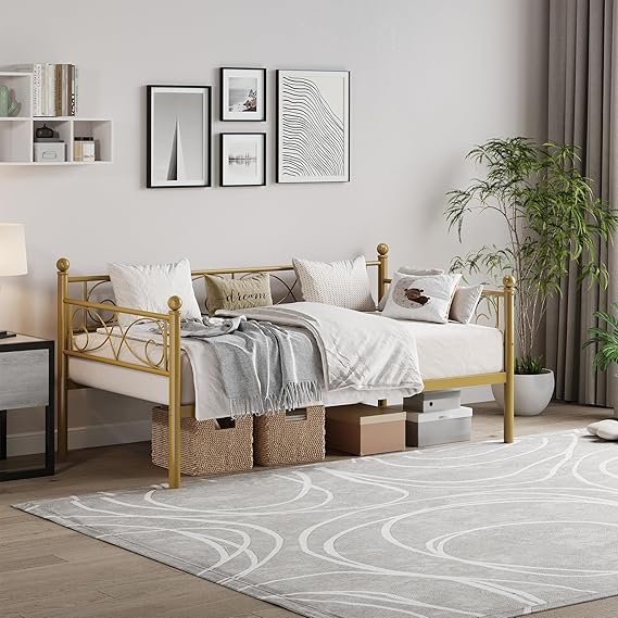 - Elegant Design: Featuring a simple iron floral pattern, this modern gold daybed frame adds visual interest and elegance, seamlessly blending with any decor. It also provides a comfortable backrest for reading and relaxing