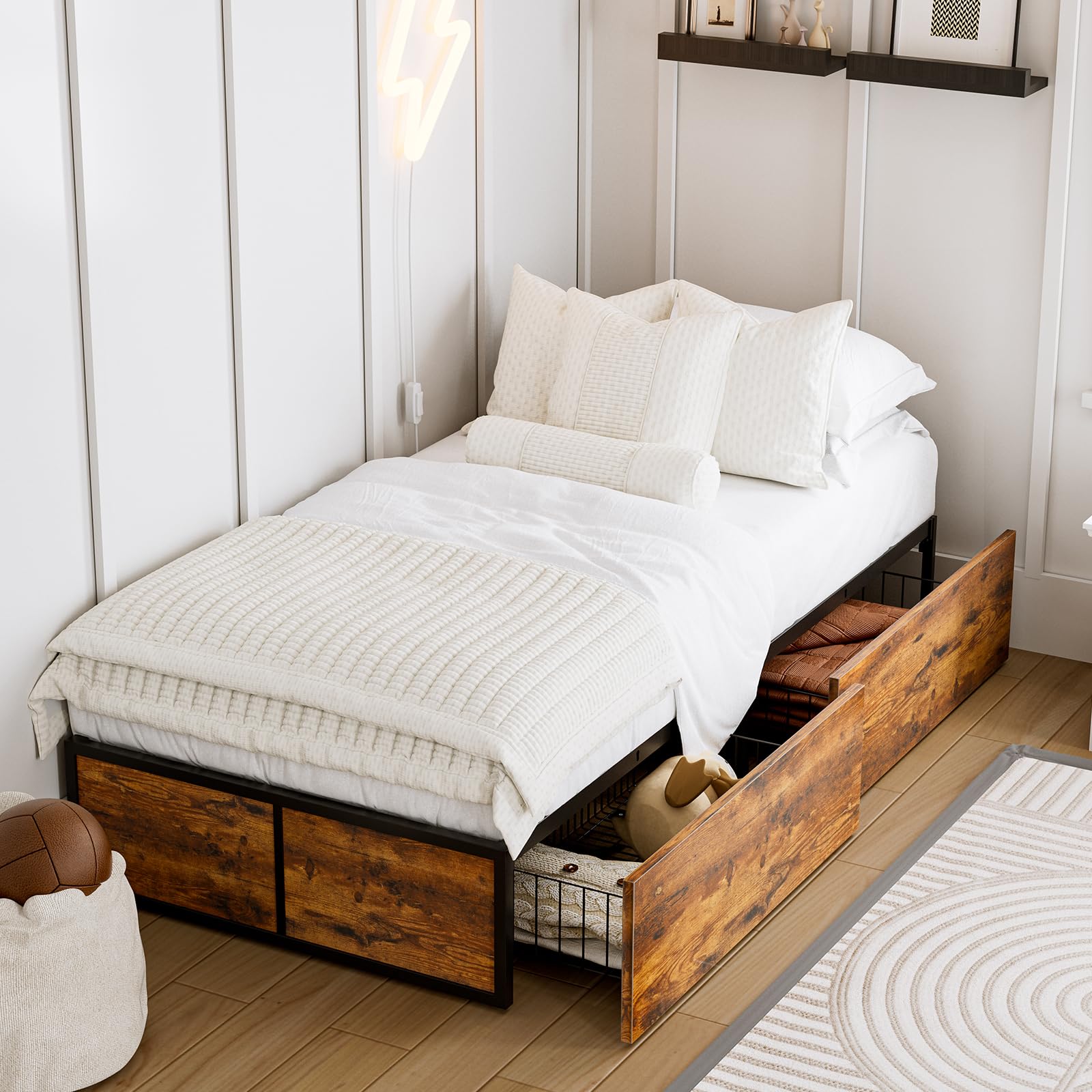 Twin XL Bed Frame with 2 XL Storage Drawers, Metal Platform Bed Frame