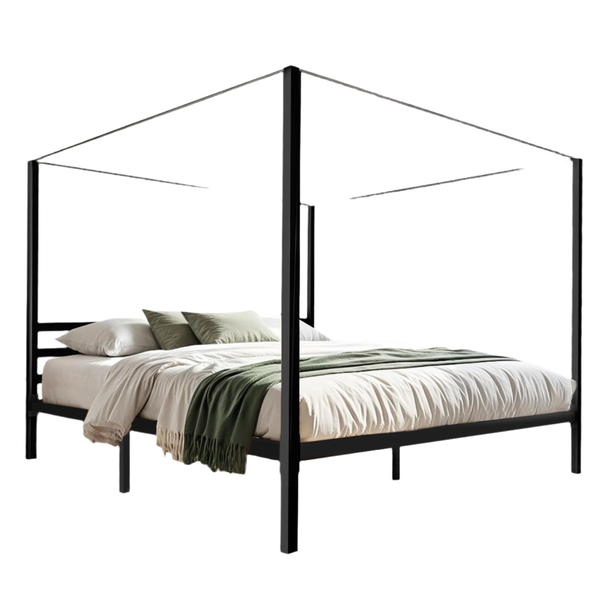 - Robust Frame with Ample Storage: Crafted from sturdy alloy steel, this king size canopy bed offers a 14-inch clearance, providing generous underbed storage space for items up to 12 inches tall, ideal for maximizing room organization