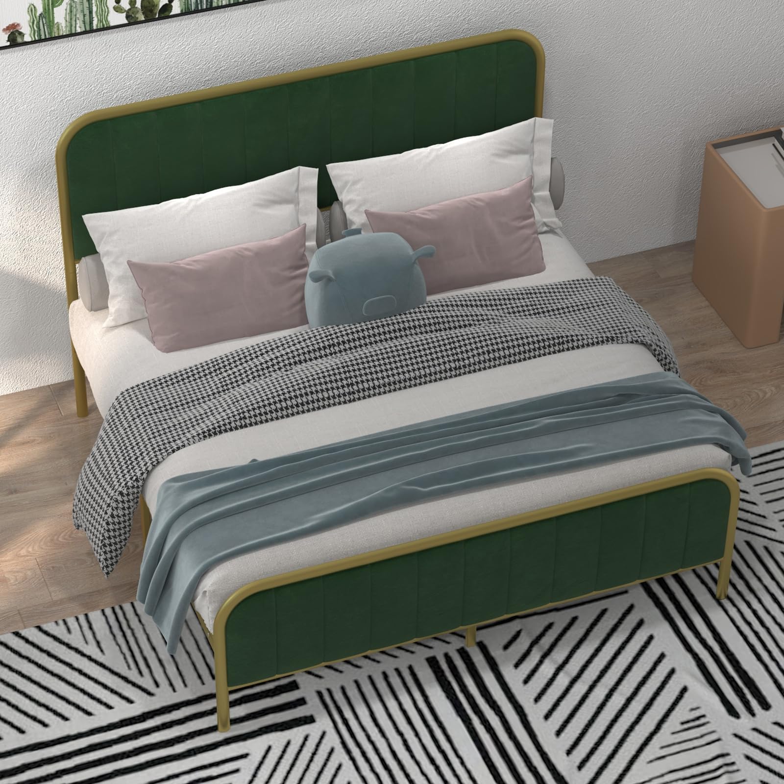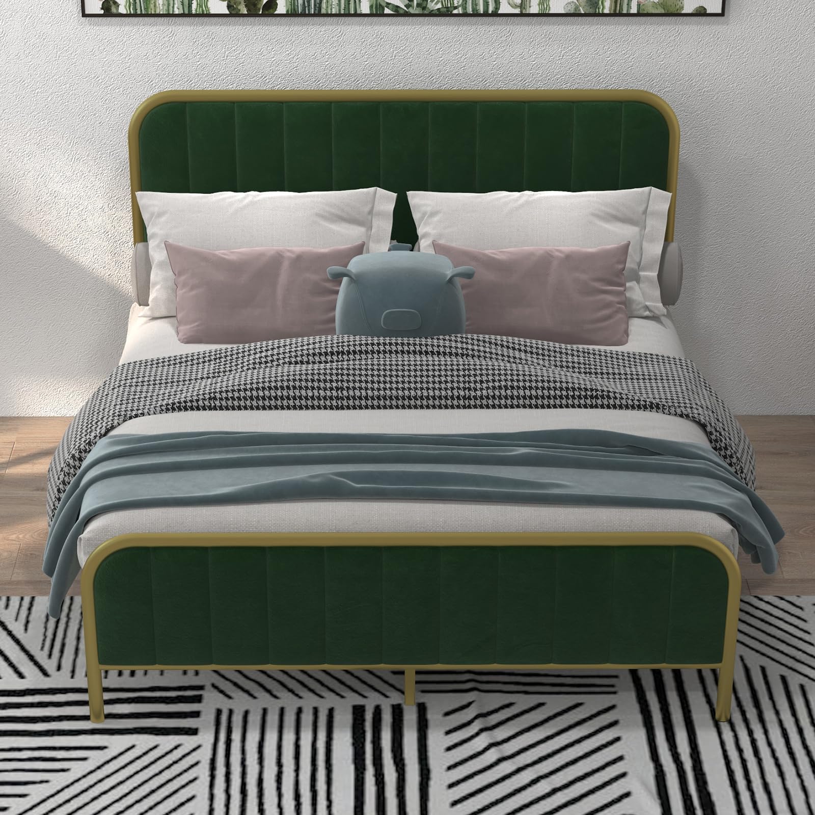- [Luxurious Velvet]: in the of a velvet headboard and footboard, elevating your bedroom's aesthetic with a touch of sophistication. Our full bed frame not only brings comfort but also adds a luxurious look, perfect for creating an opulent atmosphere similar to a queen bed frame with a headboard.