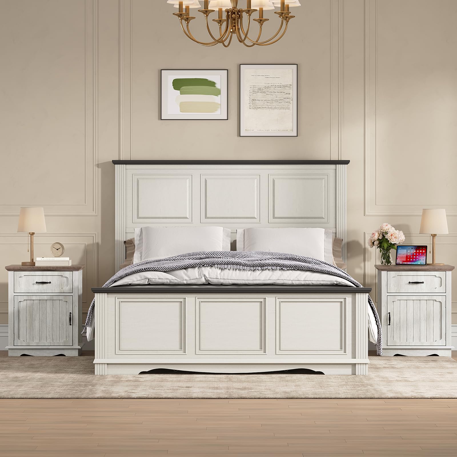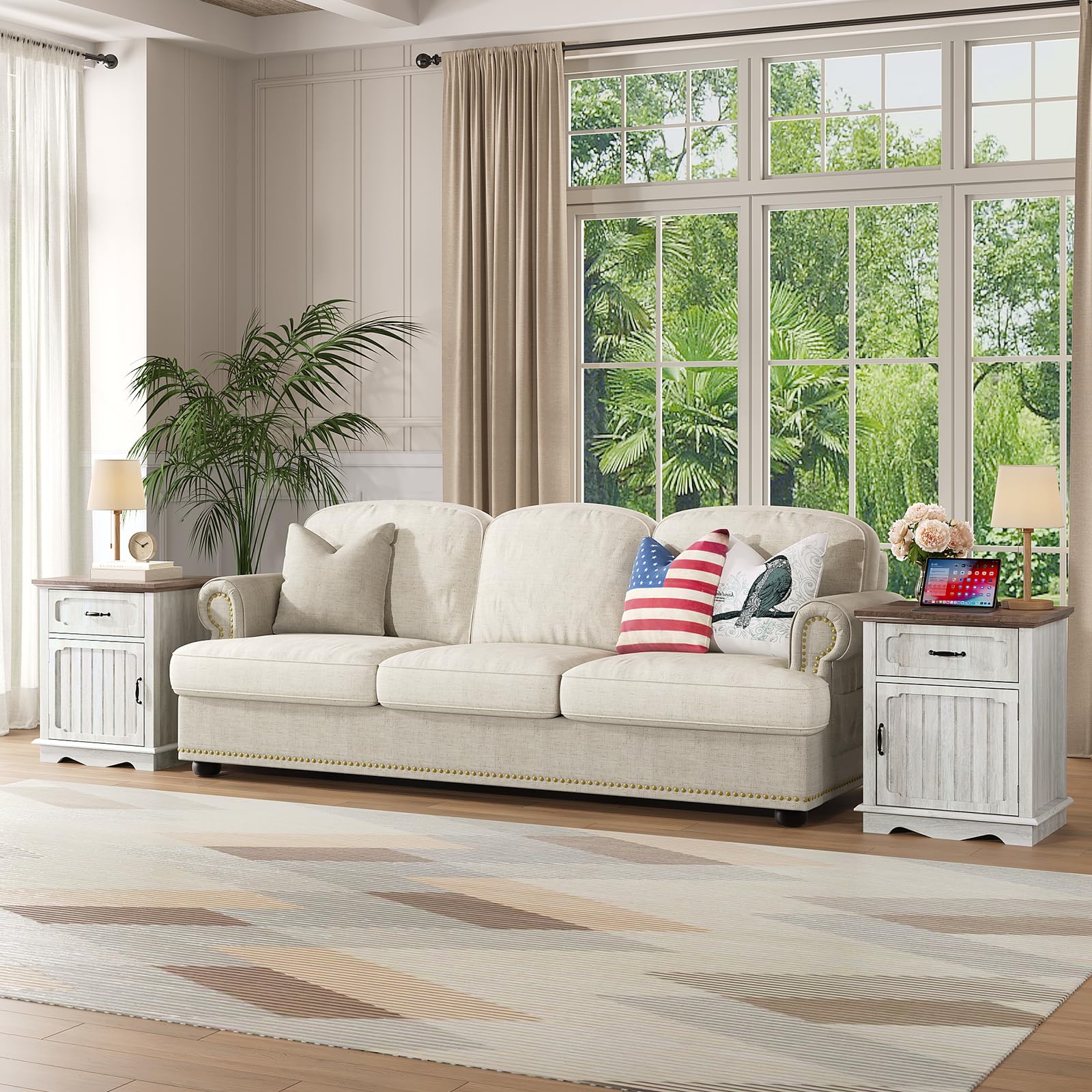 - Farmhouse Design: Side tables living room feature a rustic aesthetic with a wood-textured finish that complements rustic farmhouse decor. The white and brown tones create a cozy atmosphere, making them perfect as bedside tables in the bedroom, sofa side table, or small end table in the living room