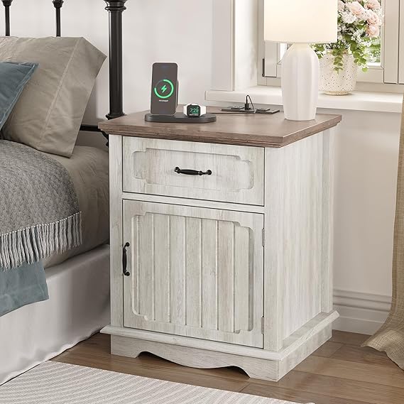 - Night Stand Set 2 with Convenient Charging Station: White night stand feature 2 AC outlets and 2 USB ports, making it easy to charge your phone, headset, gaming gear, and other electronics. You can keep your phone or headset powered up without ever leaving the comfort of your bed