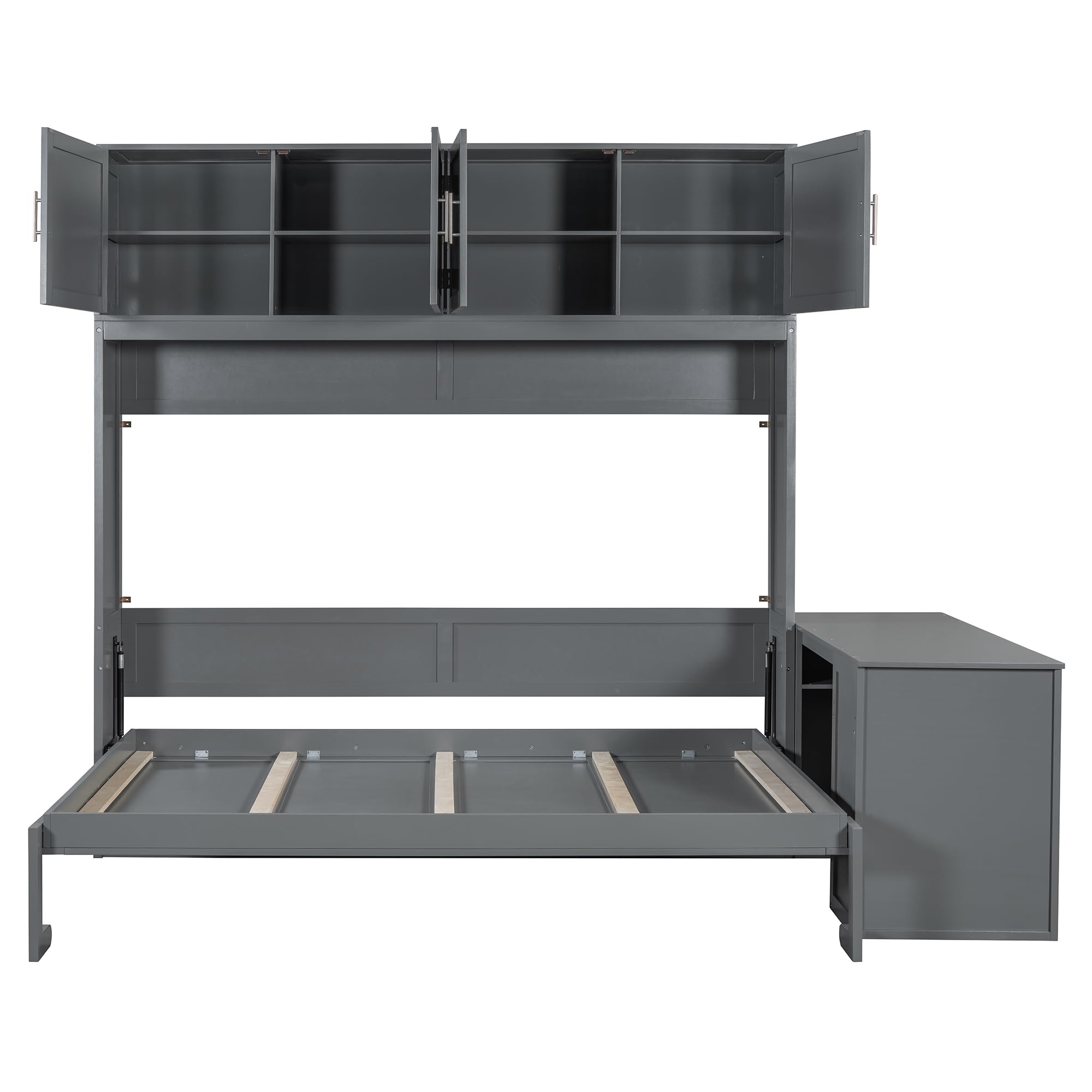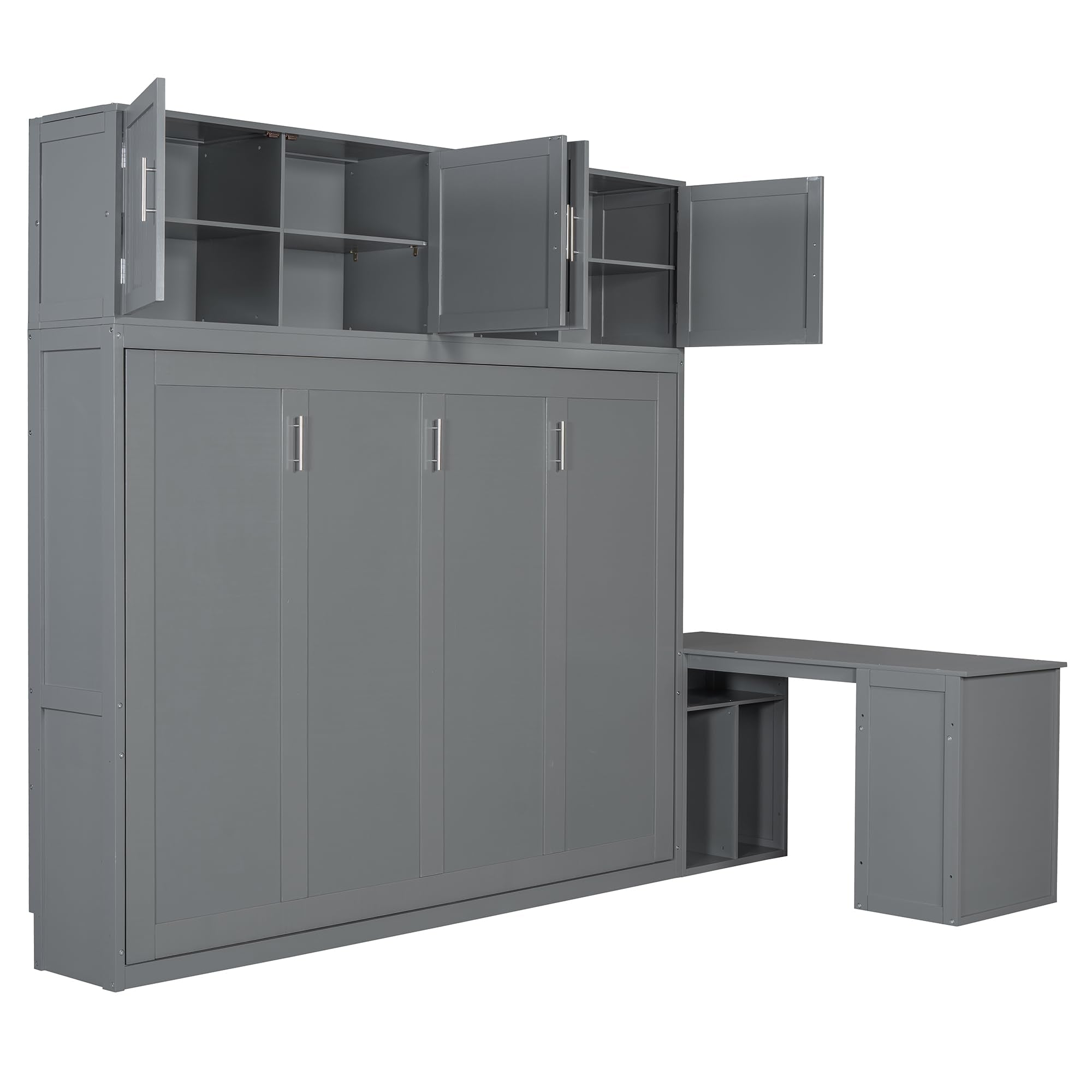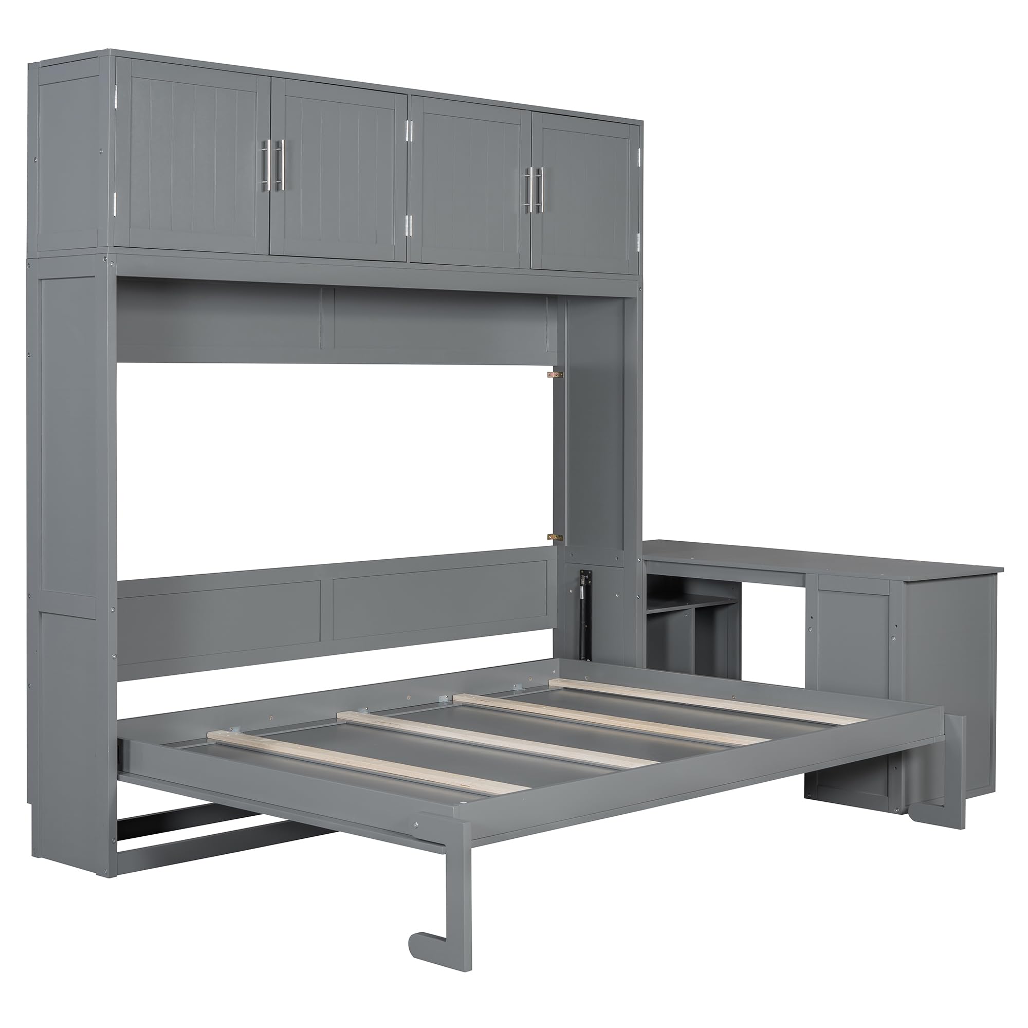 Harper & Bright Designs Queen Size Murphy Bed, Wooden Queen Wall Bed Frame with Desk and Storage Shelves and Big Cabinets, Gray