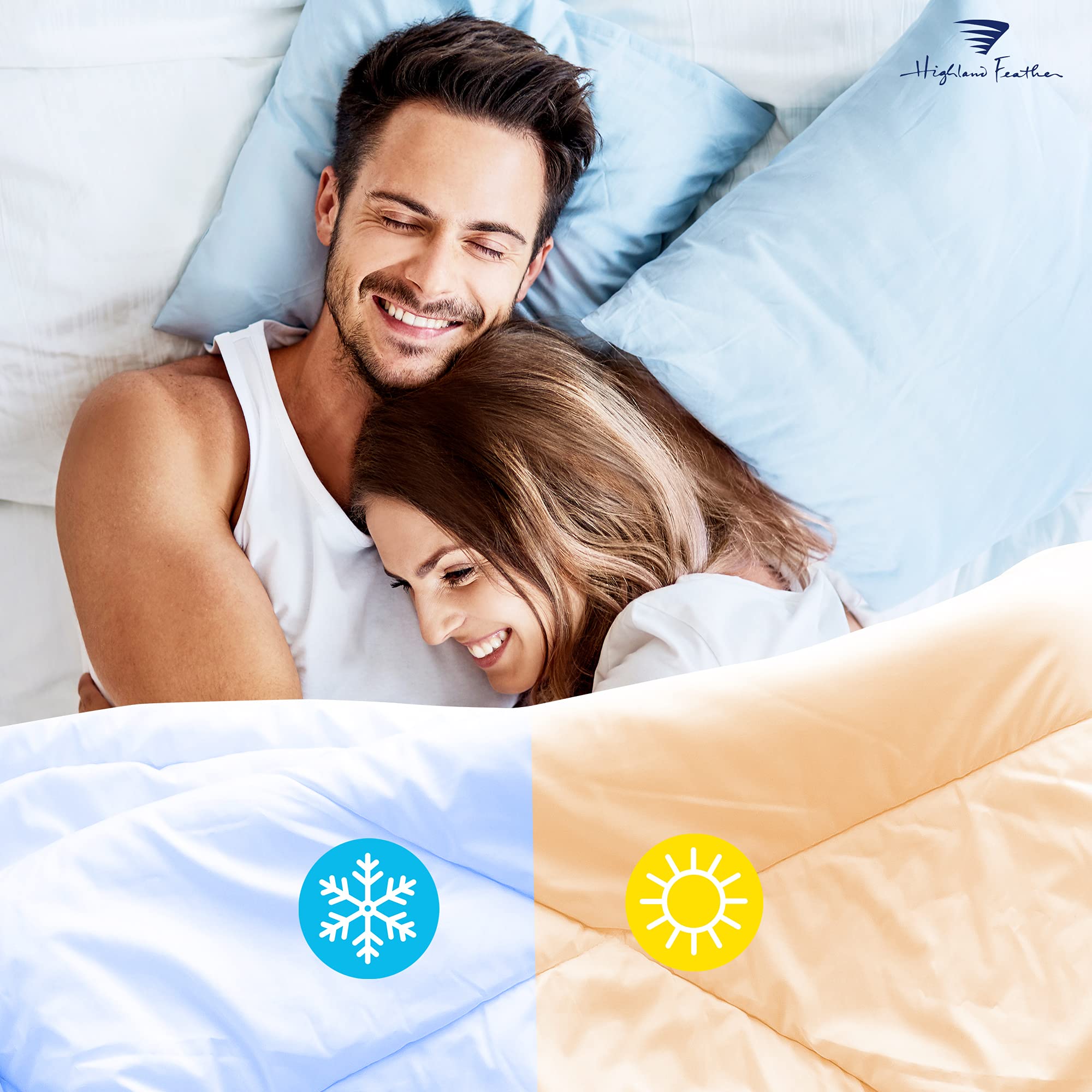 - BREATHABLE: Highland Feather breathable dual temperature comforter, fluffy 750 power fill hungarian white goose down with pure cotton fabric on the outside regulates temperature from left and right, in and out.