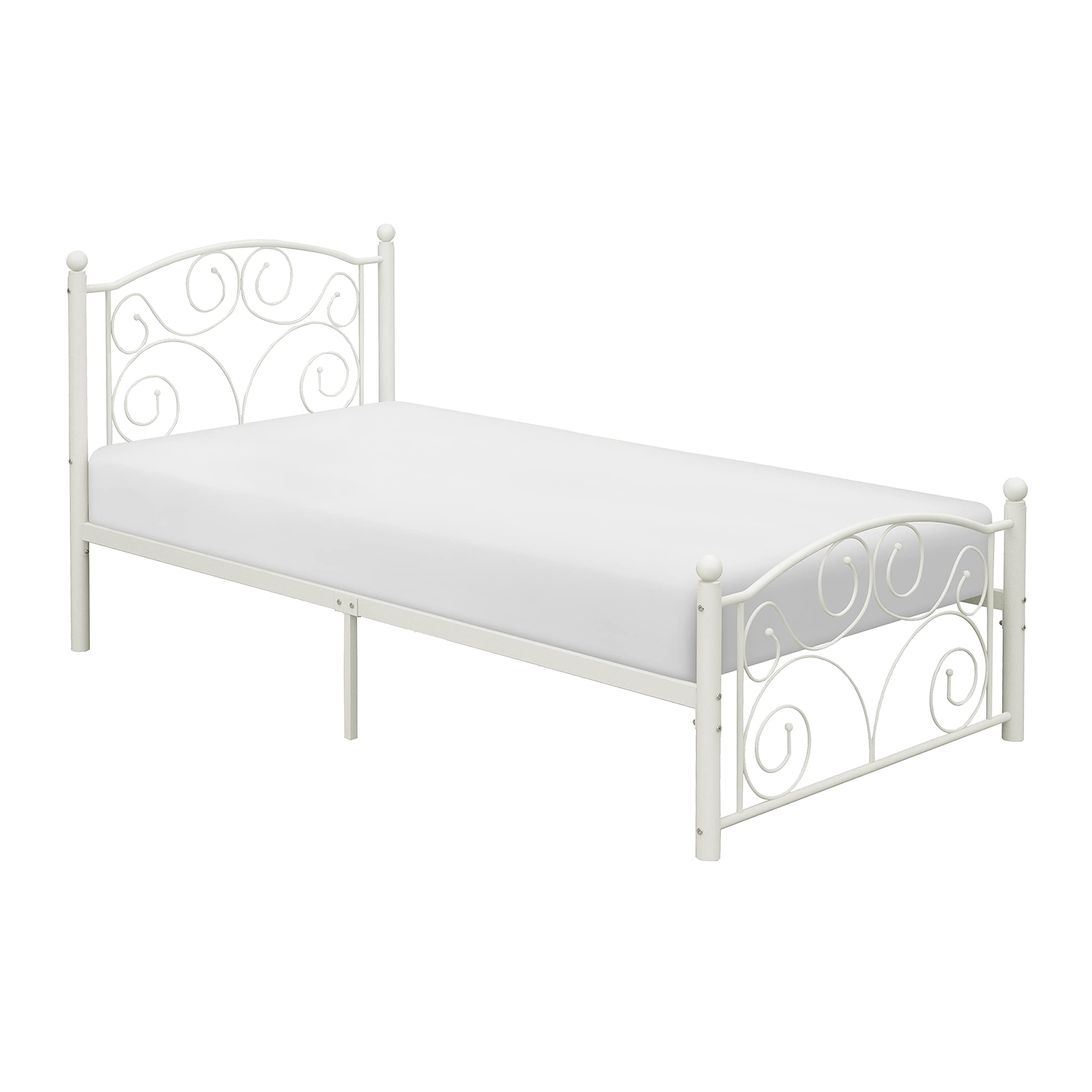 - Paullina Collection transitional swirled line style twin size metal bed in white finish