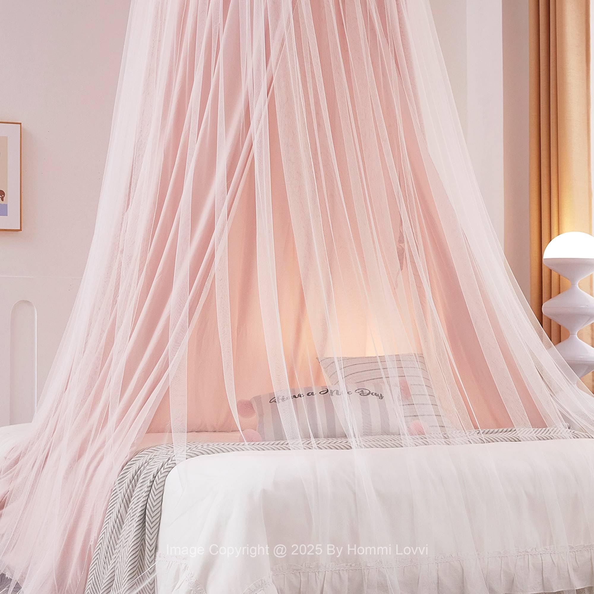 - Skin-friendly Soft Fabric Canopy: This bed canopy for girls is product of 100% lightweight polyester fabric, durable, soft, breathable. Designed for blocking out glaring light and giving you a shady and cozy sleeping place. The fabric of our princess bed canopy is supportable for machine washing, more beautiful effects on hanging will be achieved after washing