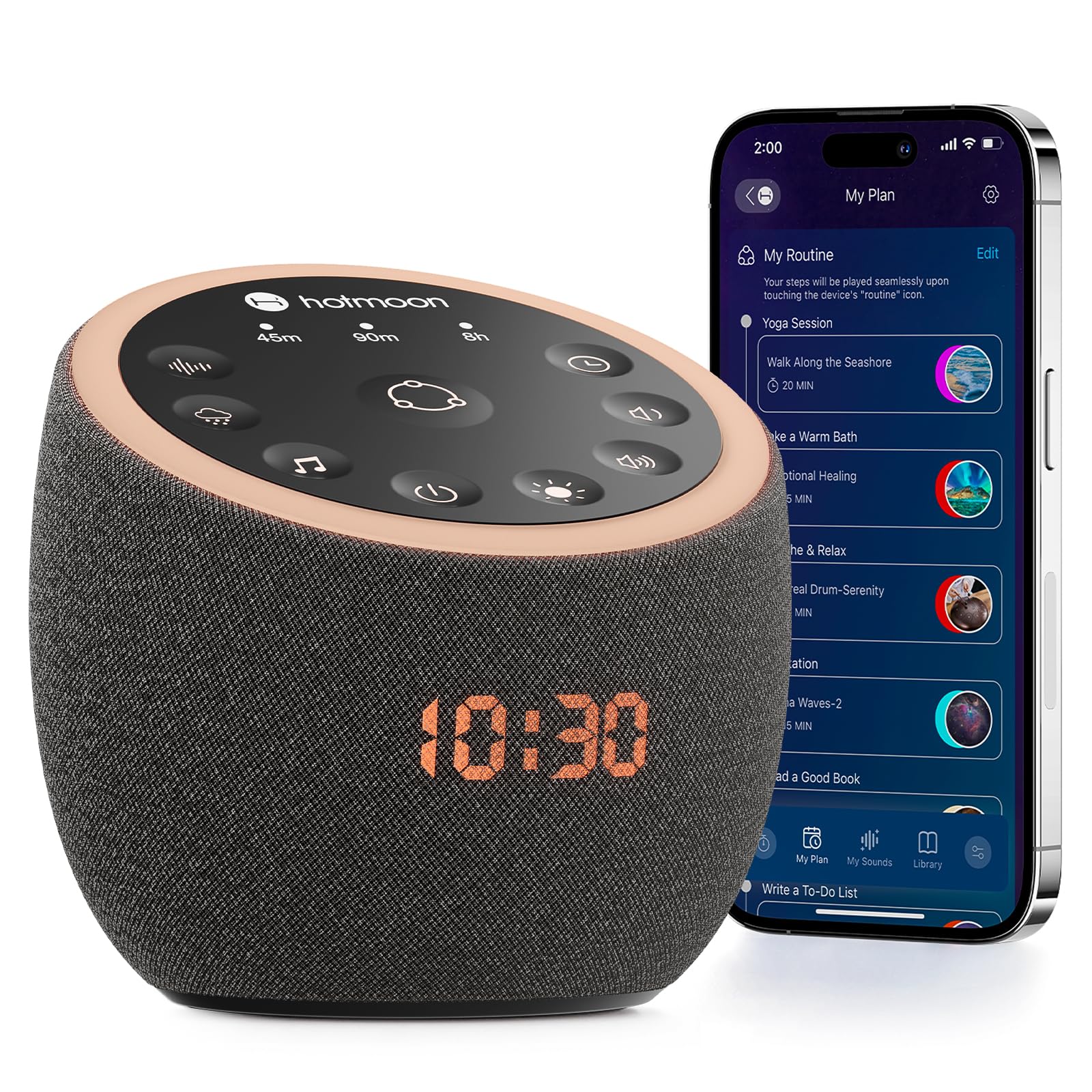 - Hotmoon white noise machine offer 388 high-fidelity sounds, including White noises, Fan sounds, Nature sounds, Lullabies, Alpha brainwaves, Zen sounds, Meditation melodies, High frequency sound etc., You can easily find your preference to create the perfect soundscape environment for sleep, relax, study, work or soothing an upset baby. Let this white noise machine be the helper of your life