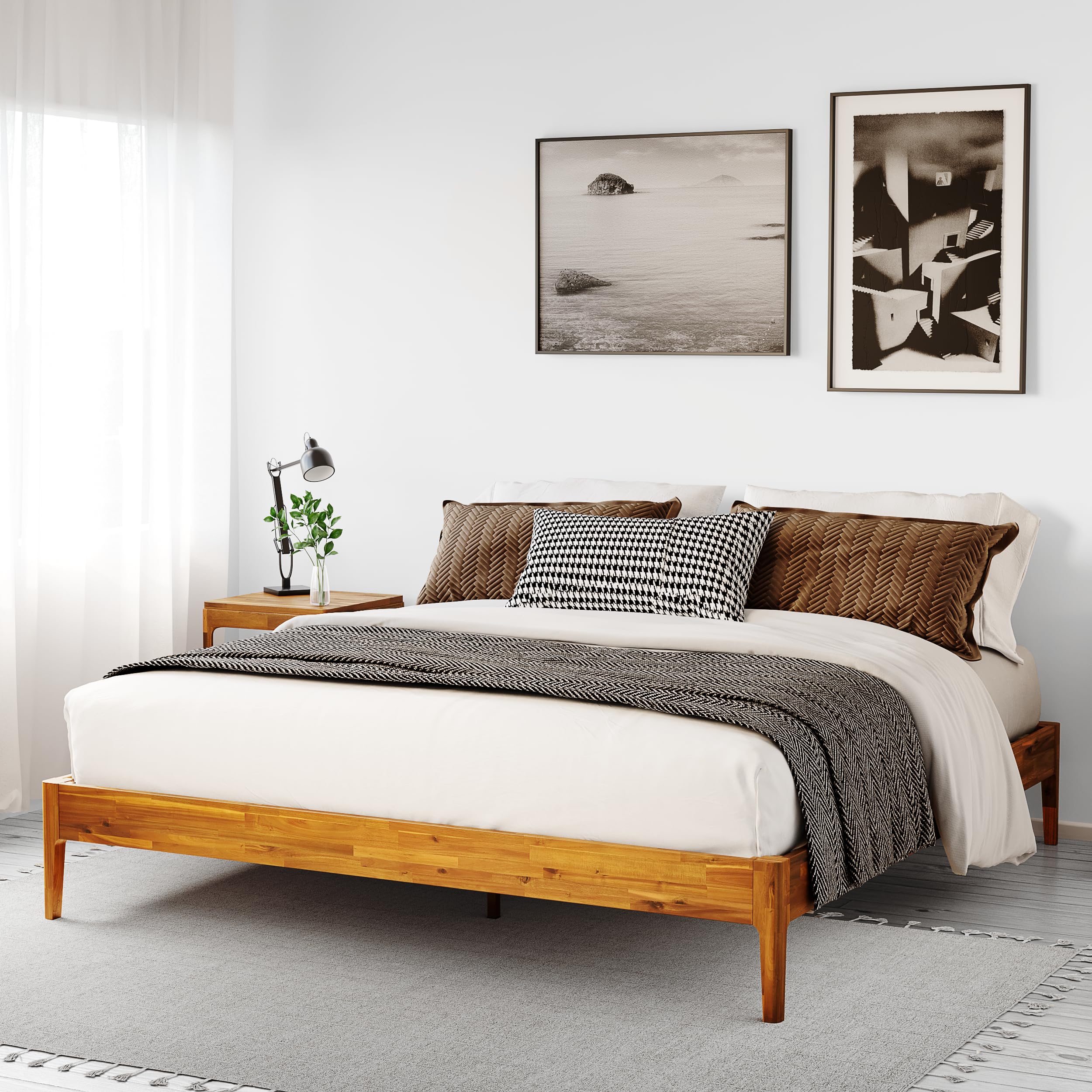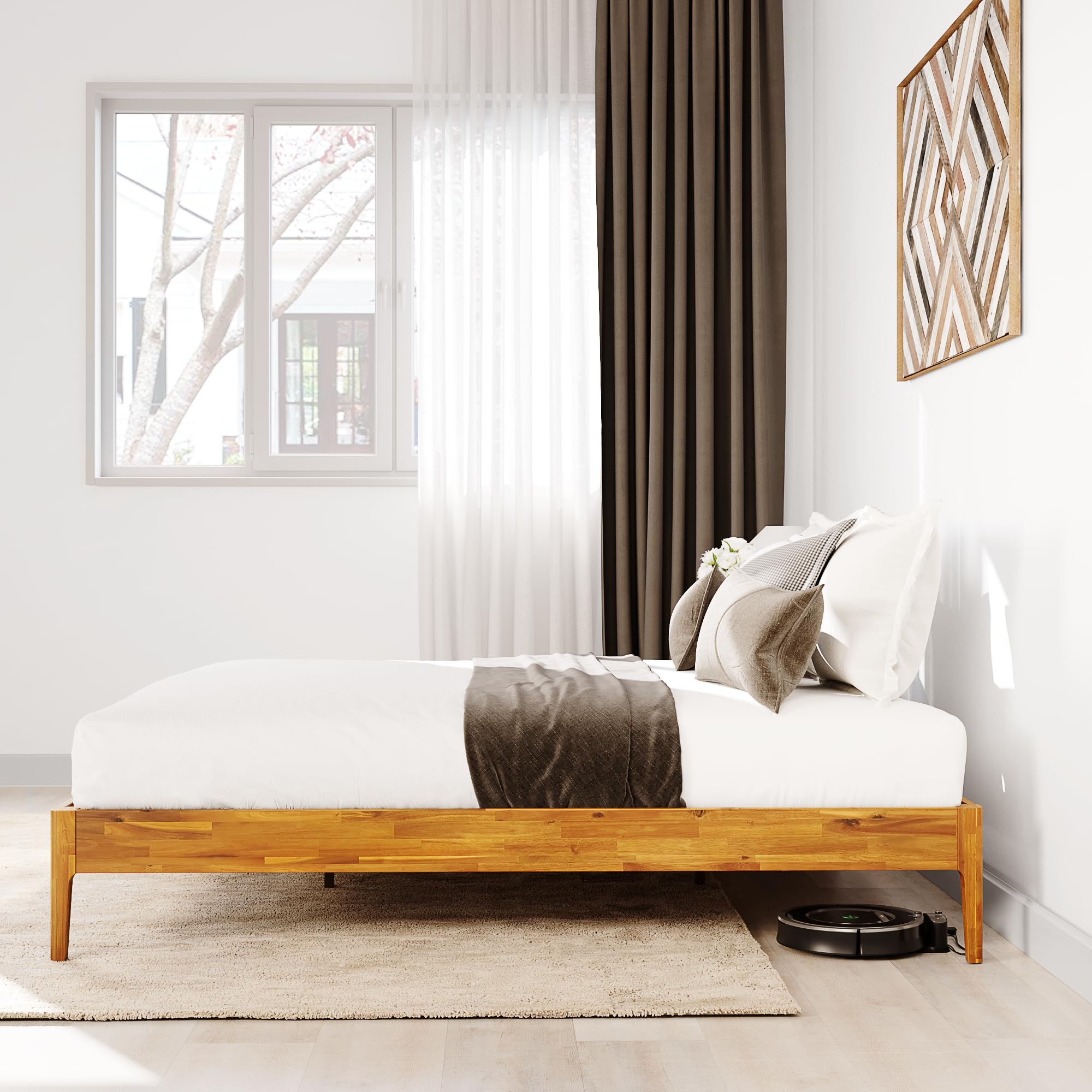Camila 14'' Luxury Acacia Wood Bed Frame – Heavy Duty Queen Platform