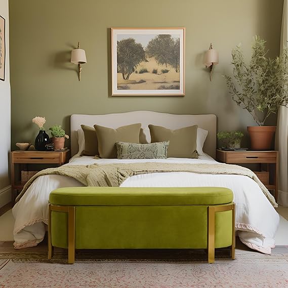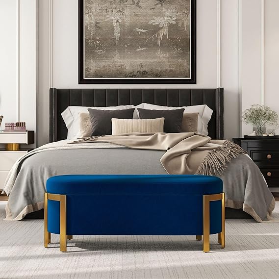 - COLOR VARIETY: This storage ottoman bench comes in 5 stunning colors – vibrant orange, clean white, subtle black, navy blue, and vintage olive green – ensuring that there's a perfect shade to complement your home’s decor. If you're unsure which one to choose, the timeless black is always a reliable, versatile option that suits almost any space