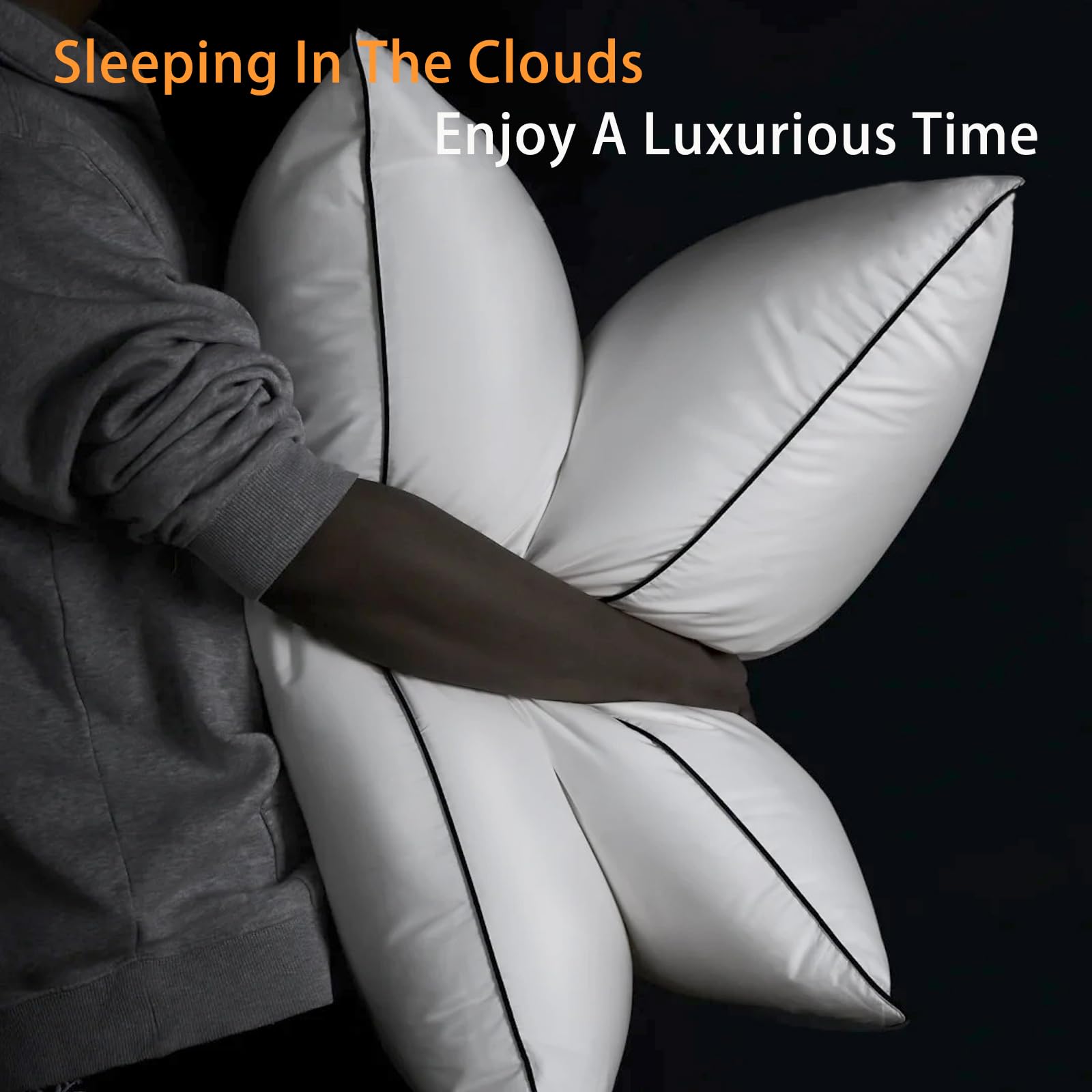 - Long-lasting Design -- Our down pillows are crafted with a long-lasting design. They are double stitched and expertly tailored, featuring signature black piping that not only enhances the luxurious appearance but also prevents the down from dislodging.