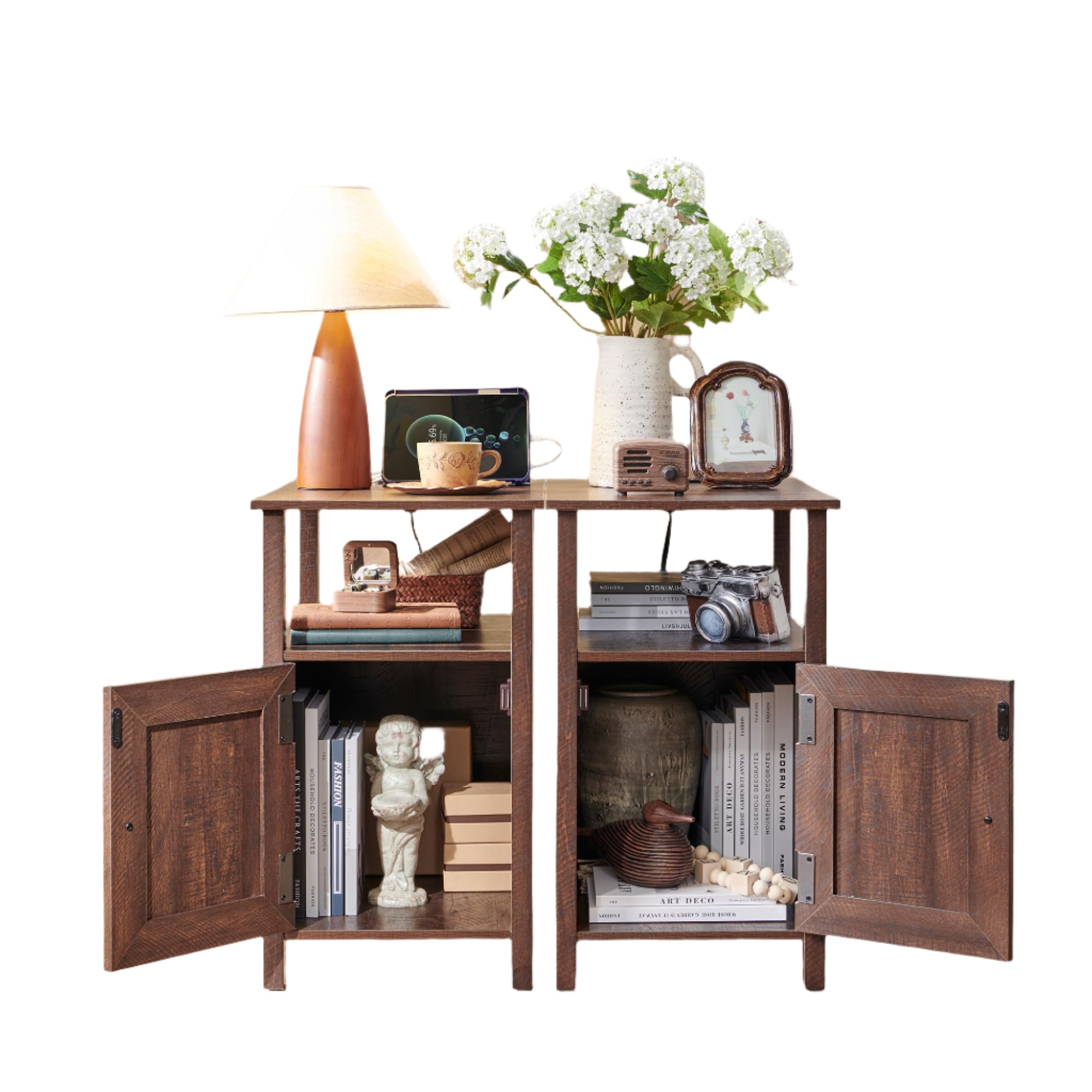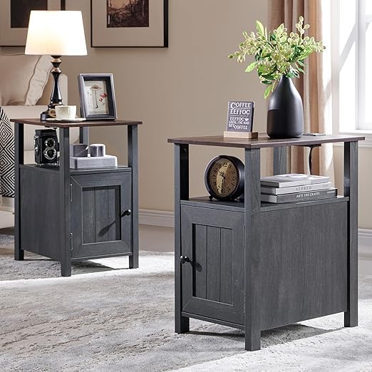 Farmhouse Nightstand Set of 2, End Table with Charging Station