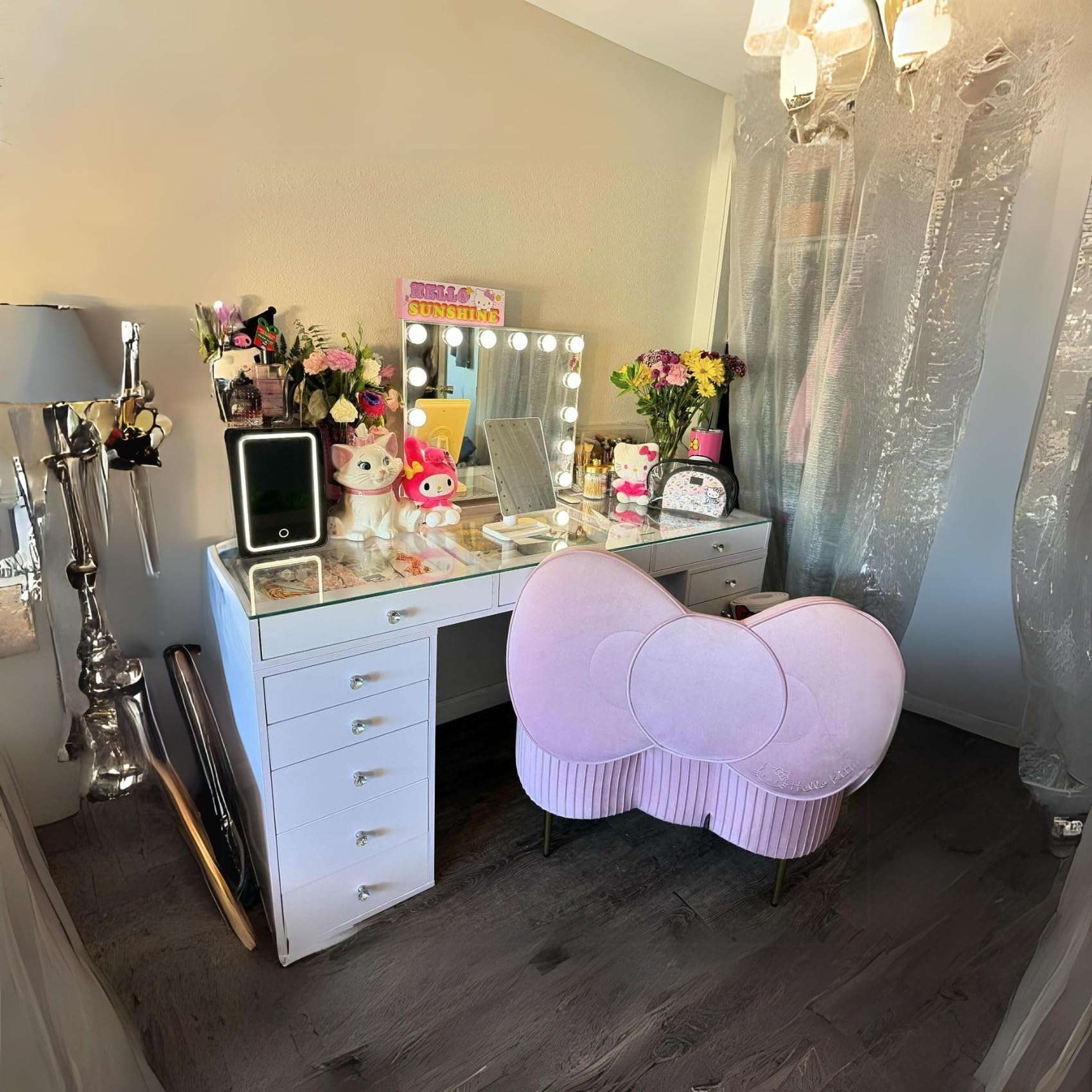 - 𝐋𝐔𝐗𝐔𝐑𝐈𝐎𝐔𝐒 𝐆𝐈𝐅𝐓: This Hello Kitty chair isn’t just nice to look at; it’s comfortable too. Our leather vanity rolling chair makes a perfect gift for makeup lovers for Valentine’s Day, Christmas, or Thanksgiving