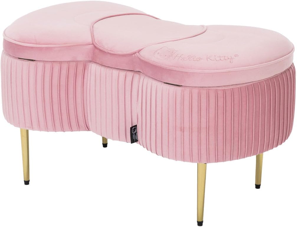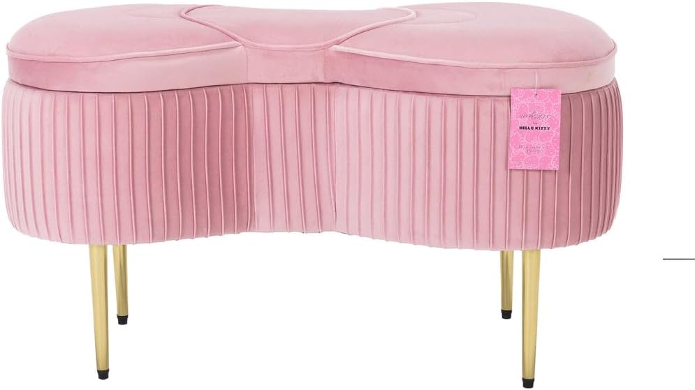 - 𝐇𝐄𝐋𝐋𝐎 𝐊𝐈𝐓𝐓𝐘 𝐃𝐄𝐒𝐈𝐆𝐍: Featuring the iconic Hello Kitty Bow shape seat design, this end of bed bench is not just a functional storage solution but also a glamorous accent for living rooms, vanity areas, and more
