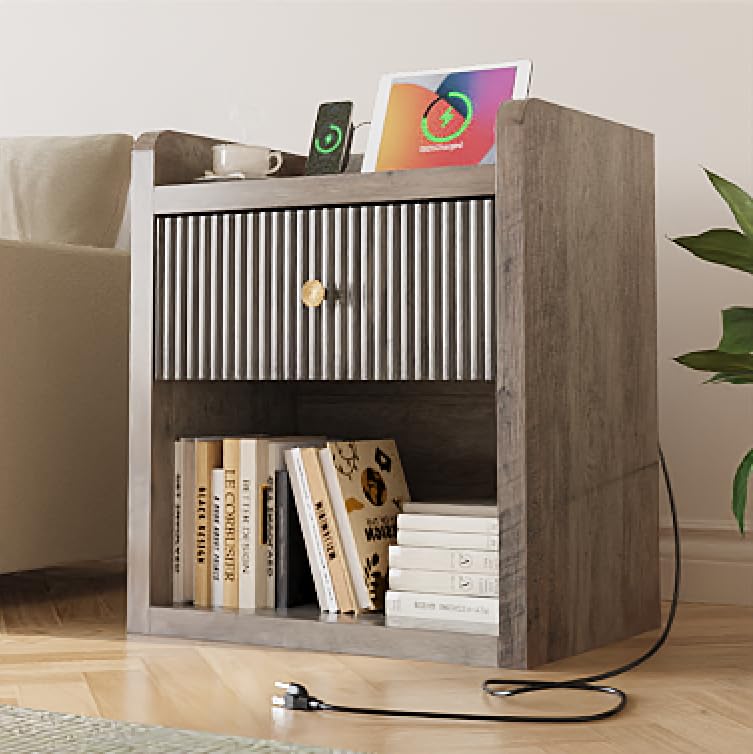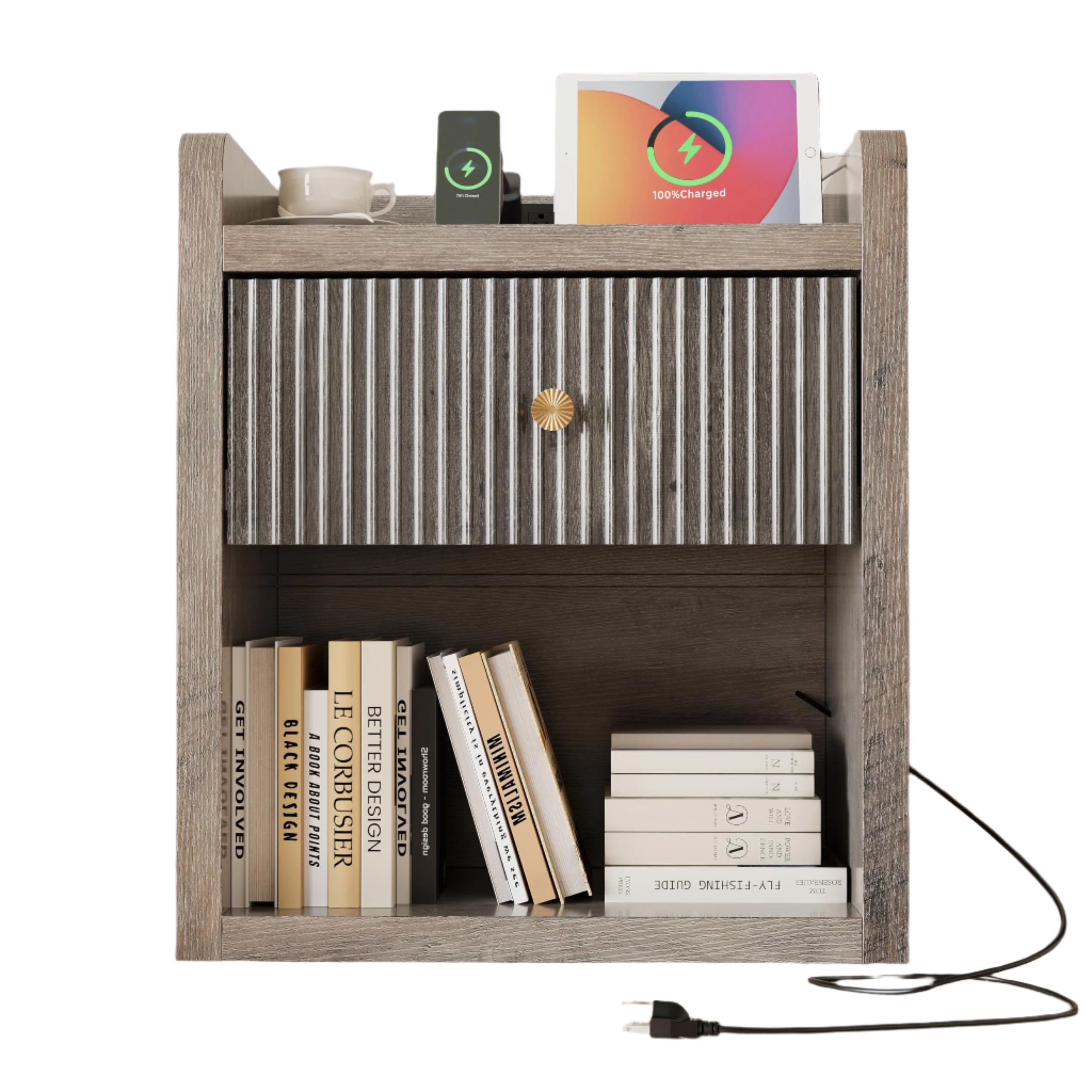 - Fluted Nightstand with Baffle Top: Features an elegant fluted design with an anti-slip top for secure placement of lamps or decor. The roomy drawer keeps items tidy, while smooth edges and a sturdy build ensure safety and durability. Easy assembly makes setup a breeze