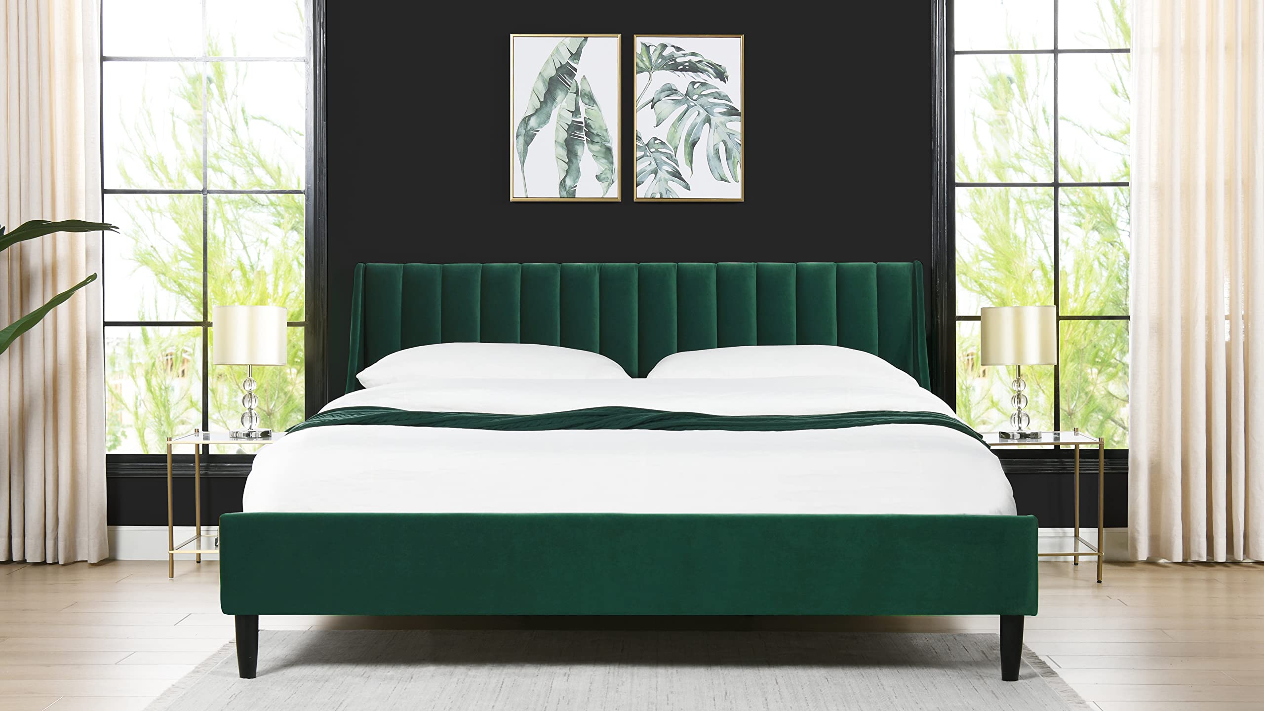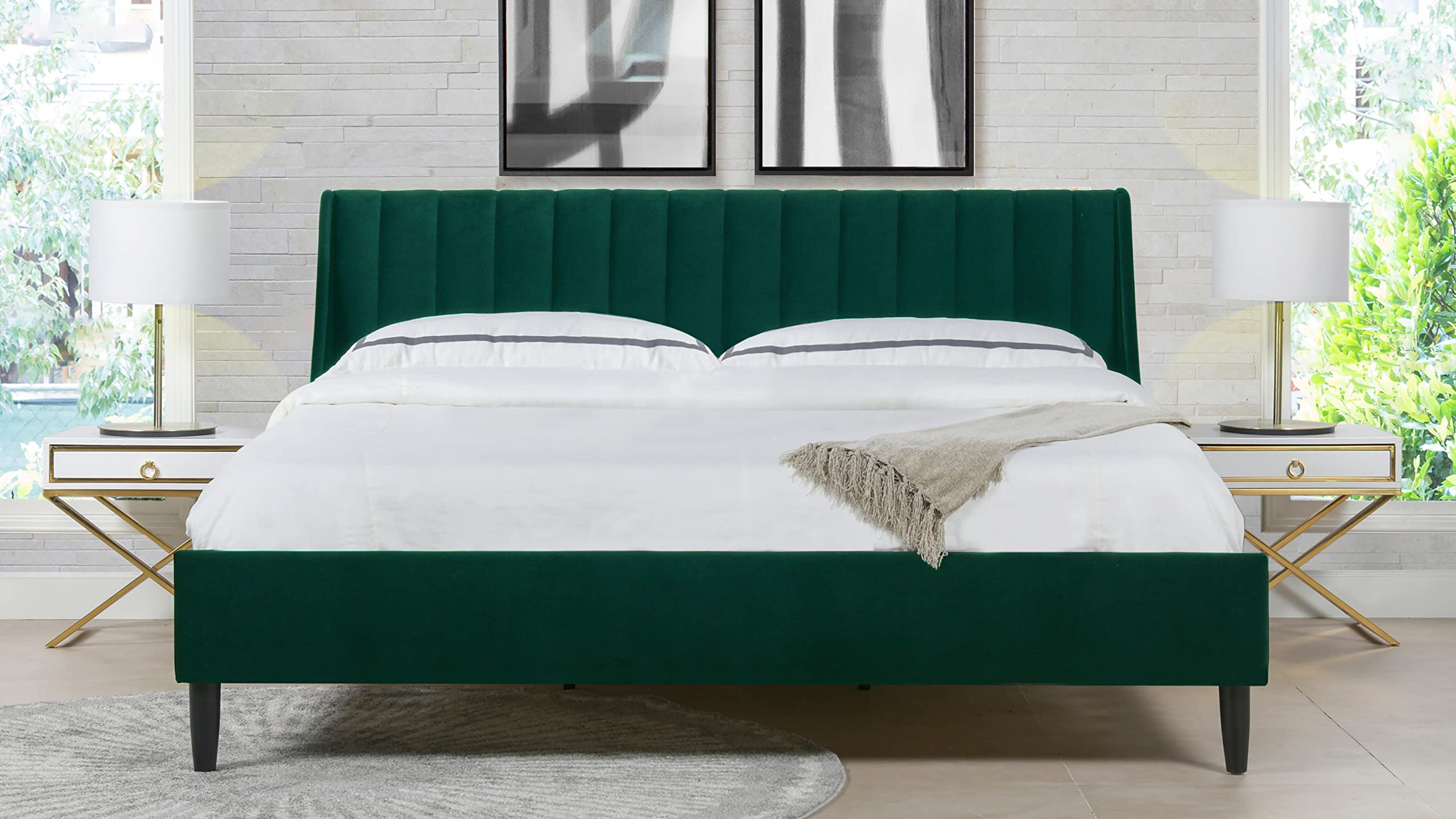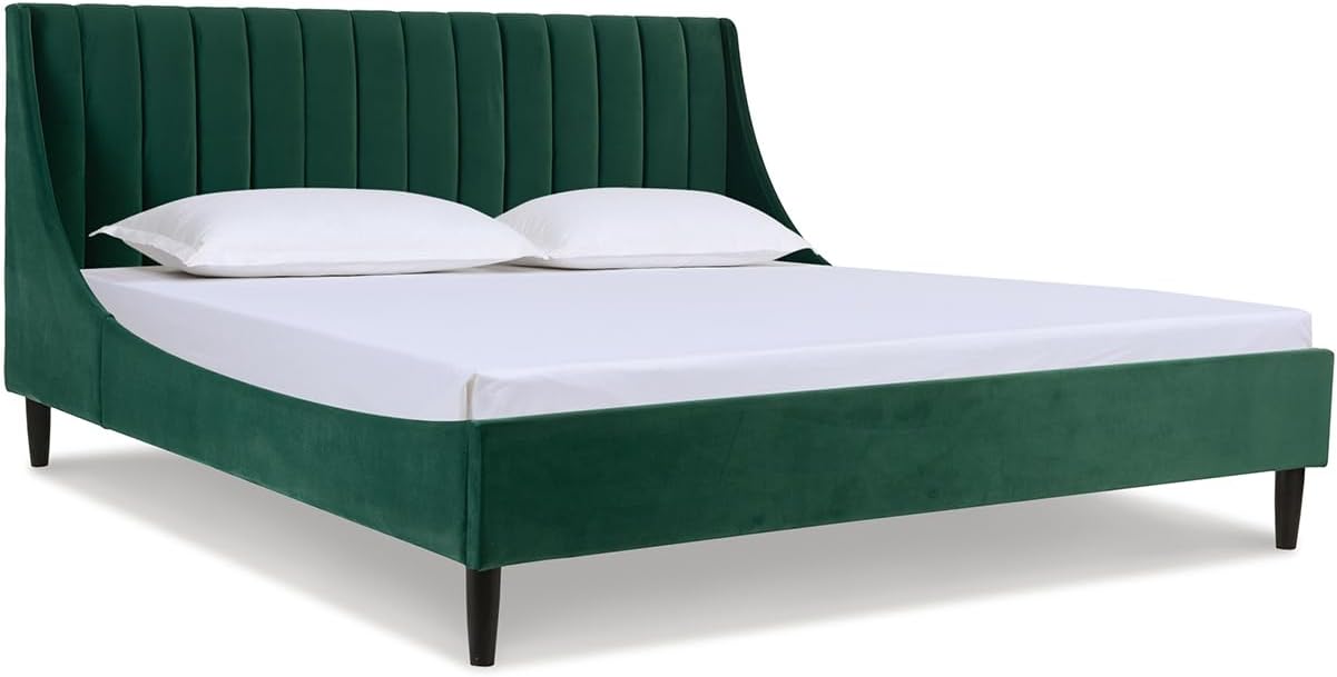 Size King Product Dimensions 86"L x 79"W x 42.5"H Special Feature Upholstered Color Evergreen Velvet Finish Type Stained