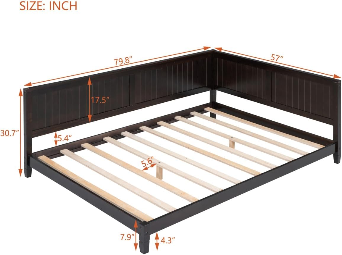 Full Size Wood Daybed, Mid-Century Modern Day Bed with Wood Frame, Sofa Bed