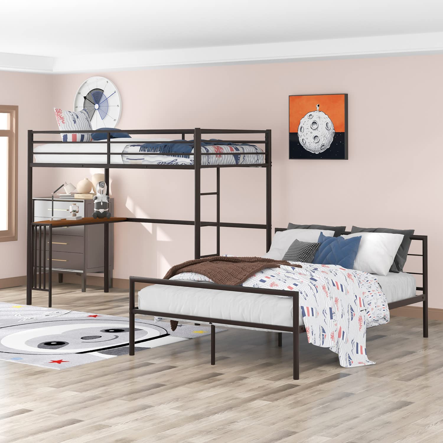 - [Versatile Use] Featuring a full sized bottom bed and twin sized upper bed, this bunk is perfect for accommodating varying sleeping space needs. Adjust this bed to your liking with its fully adjustable feature allowing it to be converted into a twin loft bed and stand-alone platform bed giving you flexible options to choose from as your needs change throughout the years. This bunk is an ideal pick for siblings sharing a room or a guest room