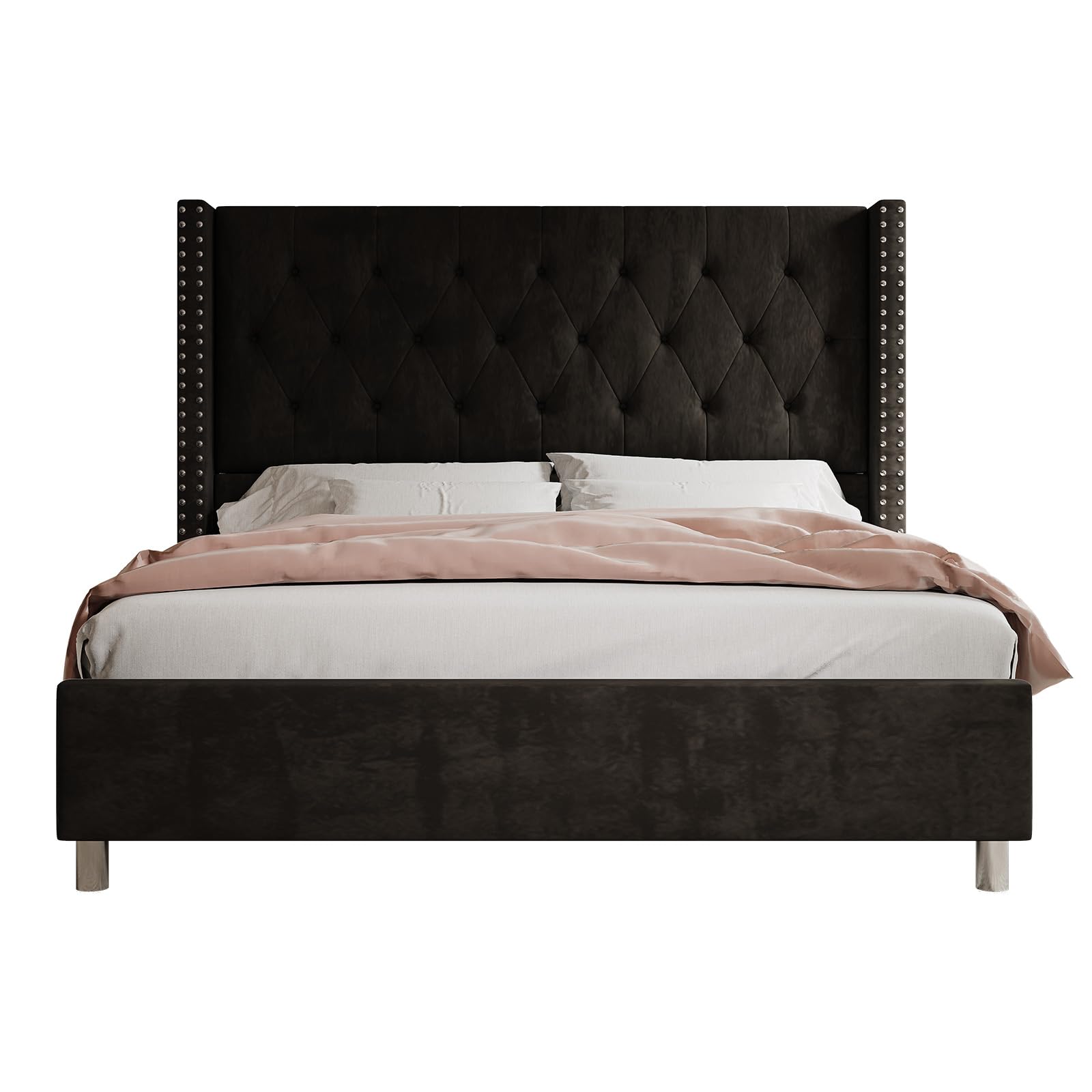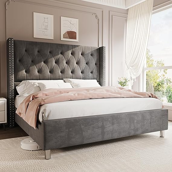 - Exquisite & Versatile: The velvet-wrapped tufted bed frame features a wingback design with rivet accents, offering a stylish and elegant look that suits various bedroom styles.