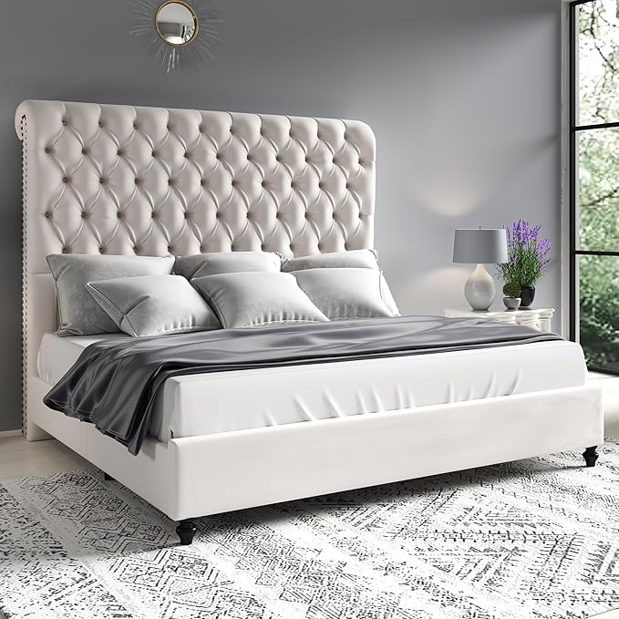 - Sink into the soft, breathable velvet headboard with hand-tufted pleats and deep buttons—full back support for cozy reading, relaxing, or movie nights.