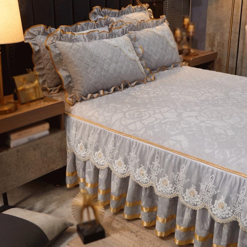 Detachable and Washable Four Piece Thick Cotton Bed Skirt Set(220 * 240cm)