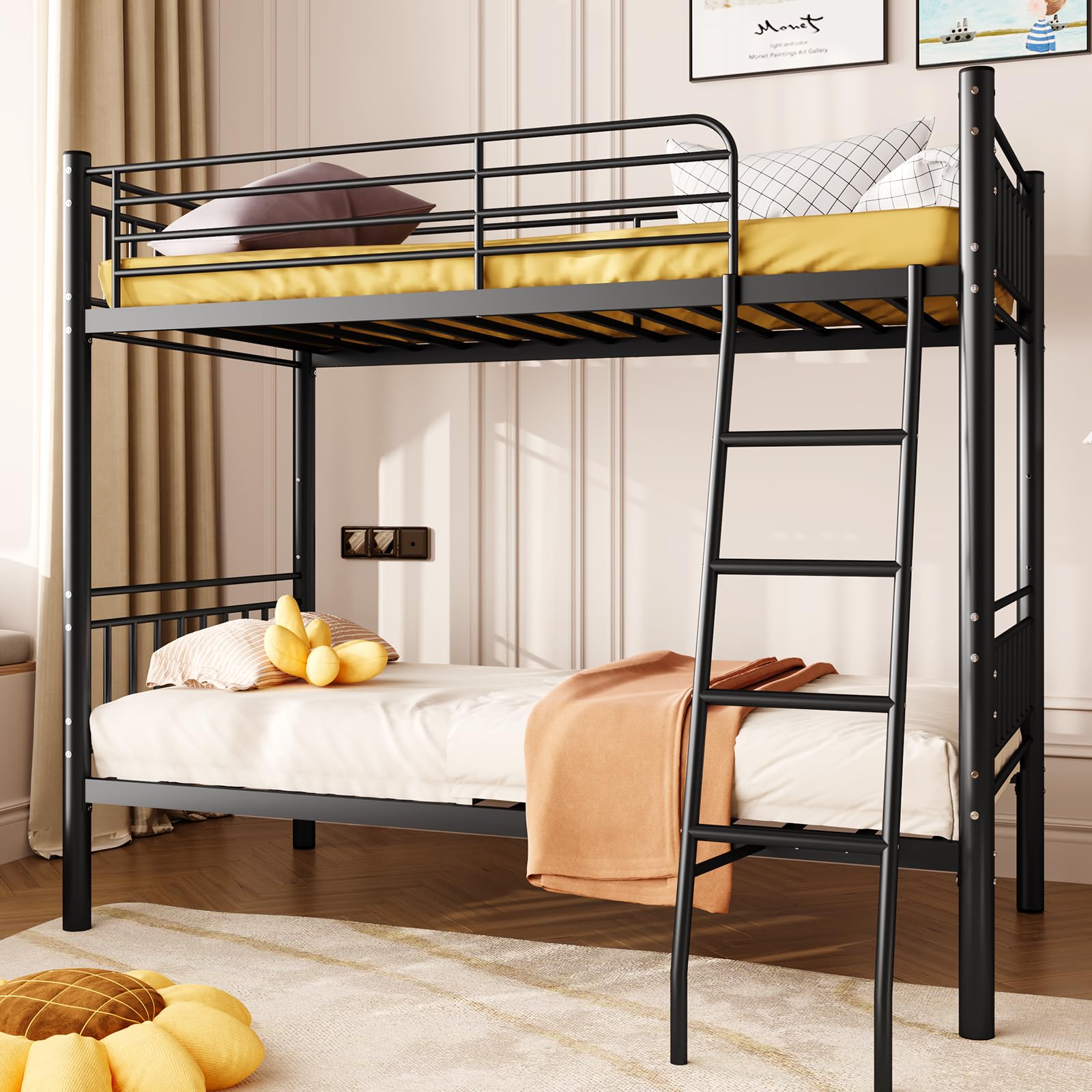 Bed Twin Over Twin, Metal Bed Frame for Kids & Adults, Twin Bunk Bed