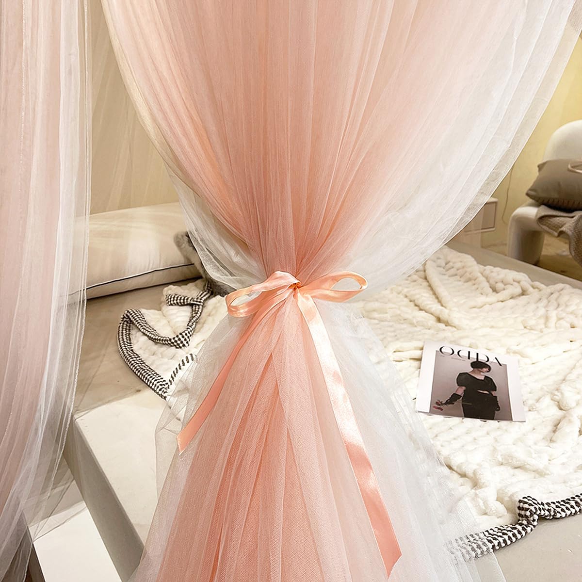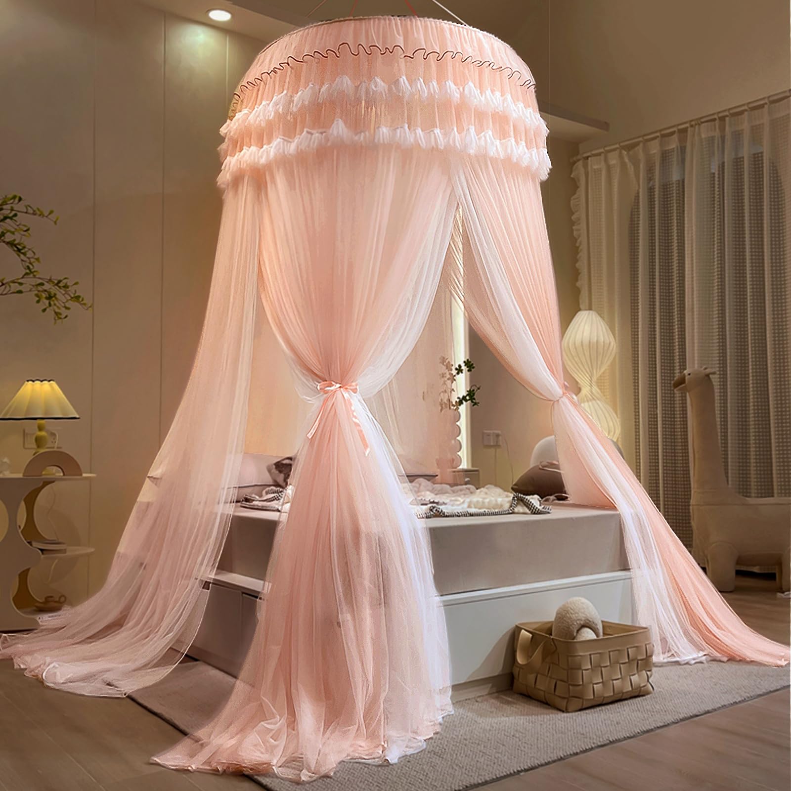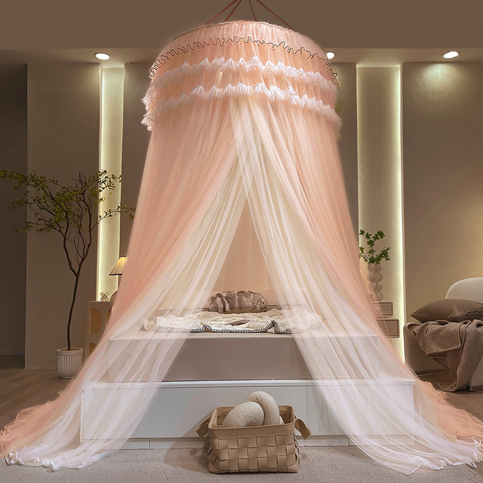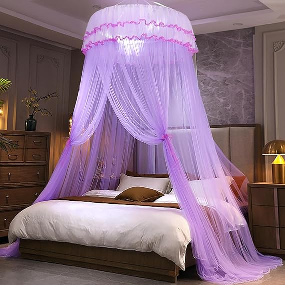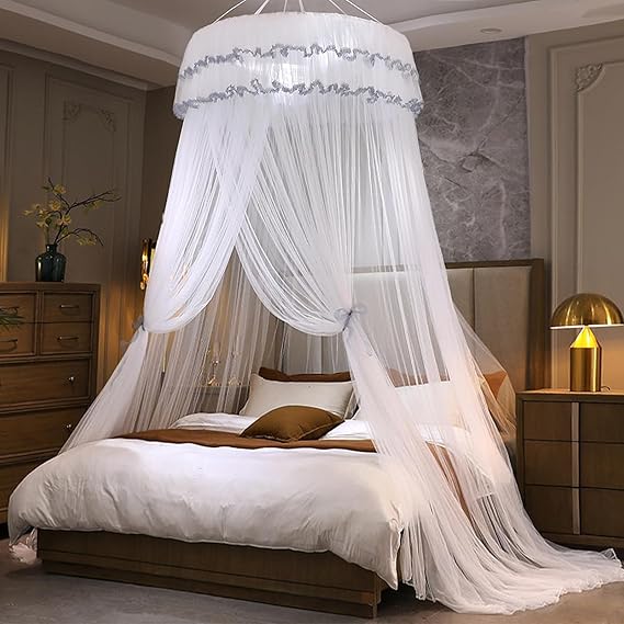 - This graceful dreamy bed canopy really lights up your bedroom and create a cosy romantic feeling. The luxurious royal design style of bed canopy curtains transform your indoor room into a charming palace. Enhance your bedroom atmosphere and decor. You can also decorate it with fairy lights and dream catchers, the mosquito netting will be more pretty. Ideal for young girls, teens, kids, toddler girls room, ladies bedroom etc.