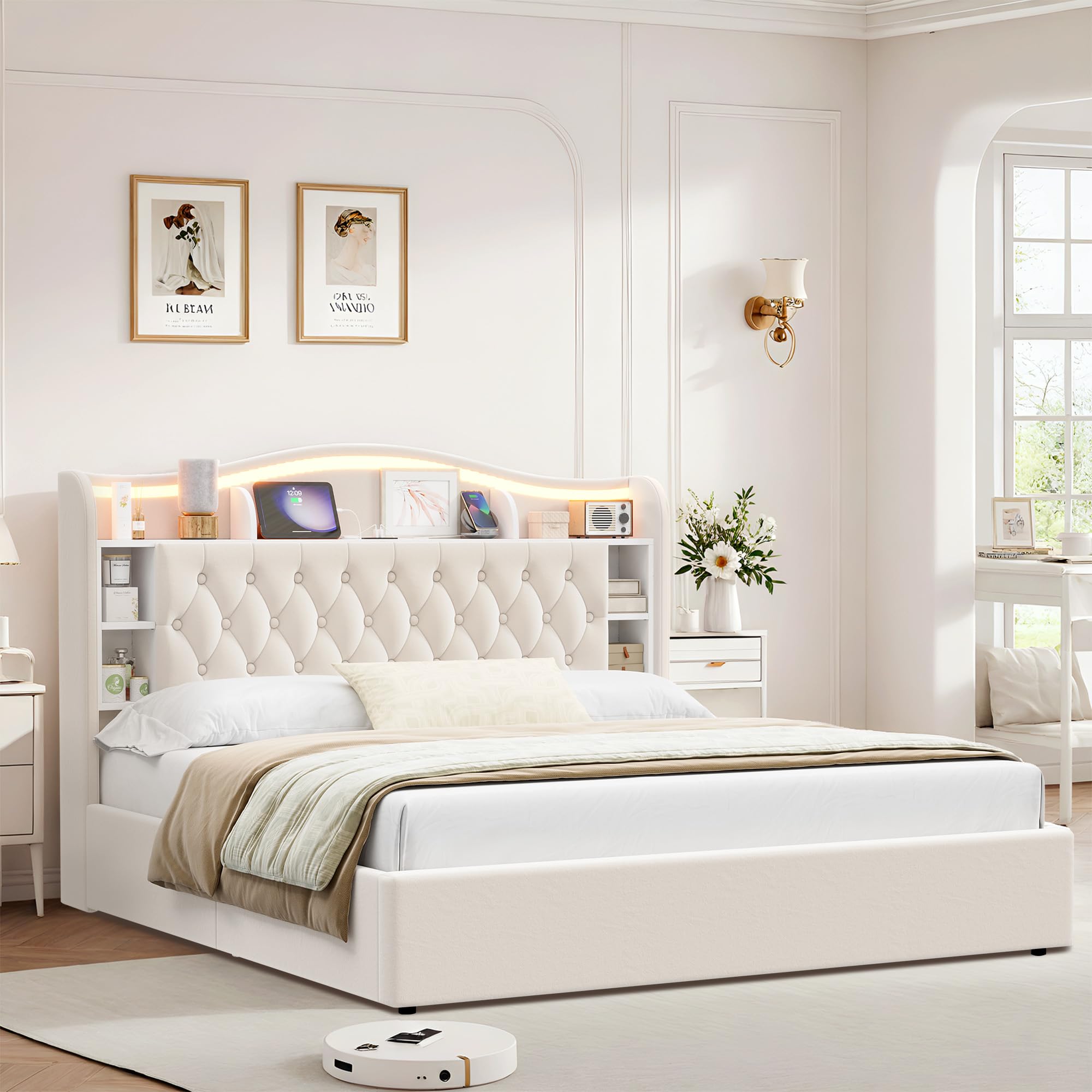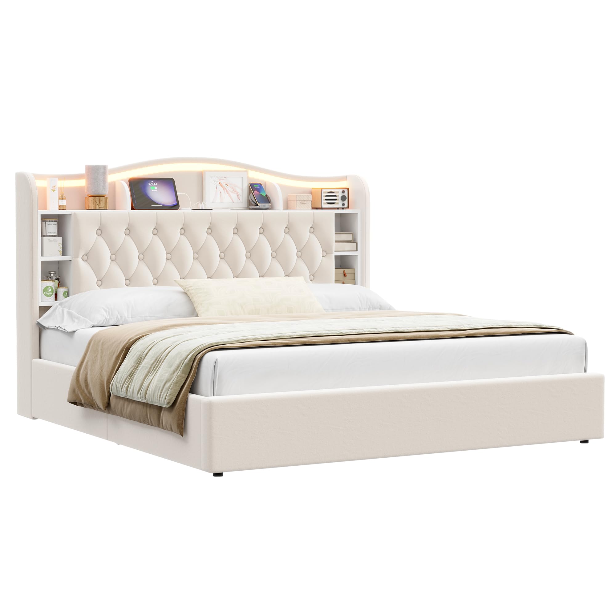 Special Feature | No Box Spring Needed, Upholstered, Slatted, LED Lighting, Charging Station |