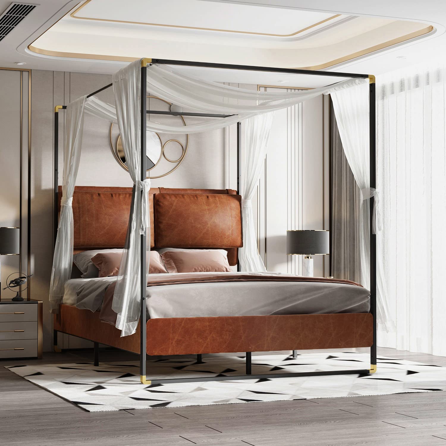 - This upholstered canopy bed frame has clean lines and comes with four removable canopy posts. You can hang beautiful decorative lamps or various bed curtains on the sturdy bed frame. Create a dreamy atmosphere in your bedroom.