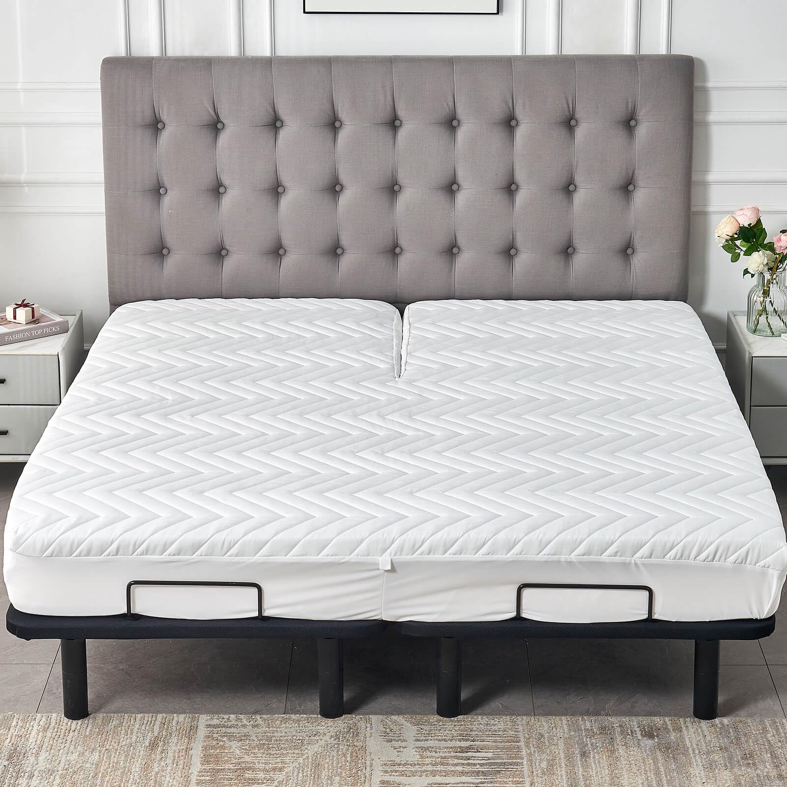 Waterproof Quilted Split Top King Mattress Protector Pad for Adjustable Bed