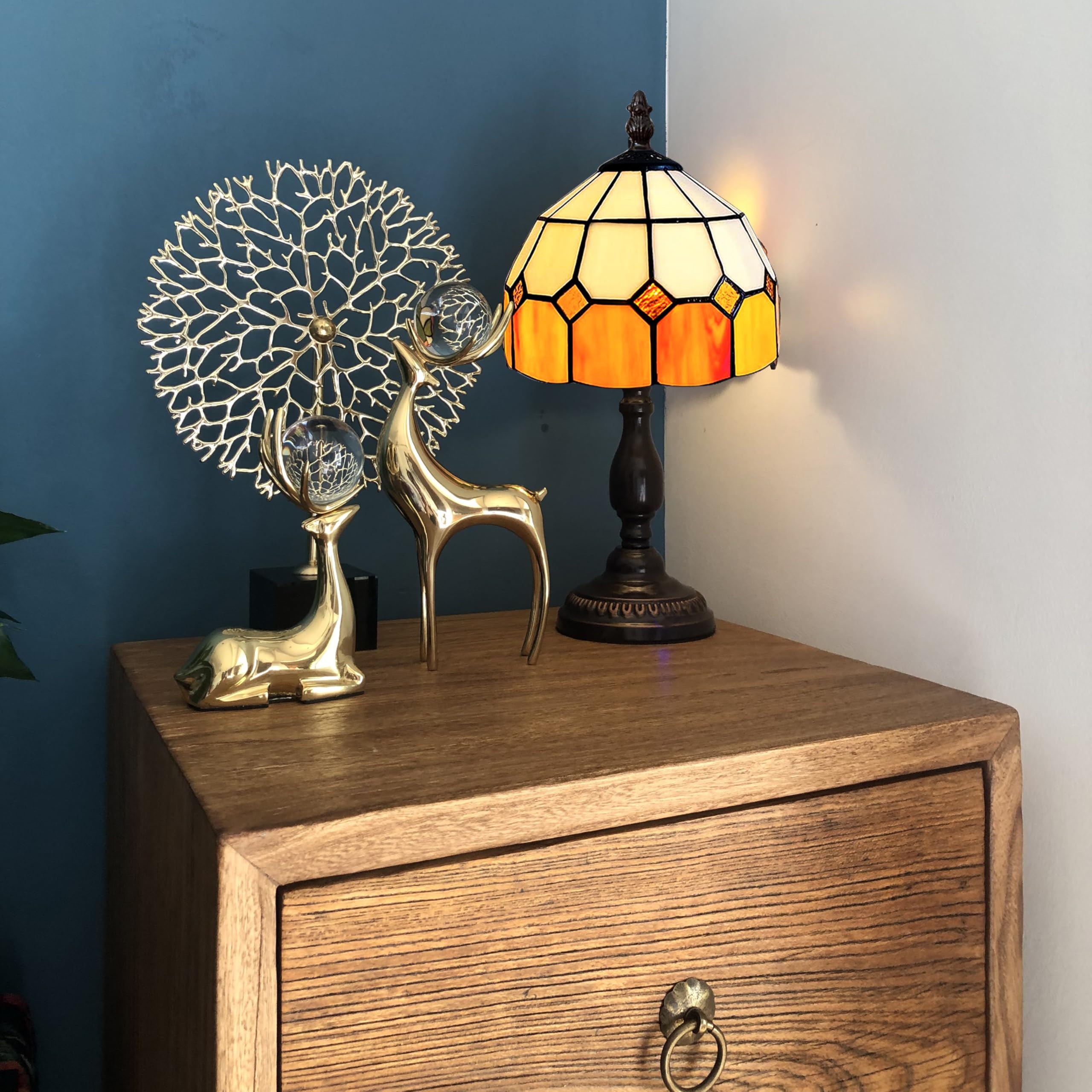 Cordless Table Lamp, Dimmable Bedside Lamps for Nightstand with Yellow Glass