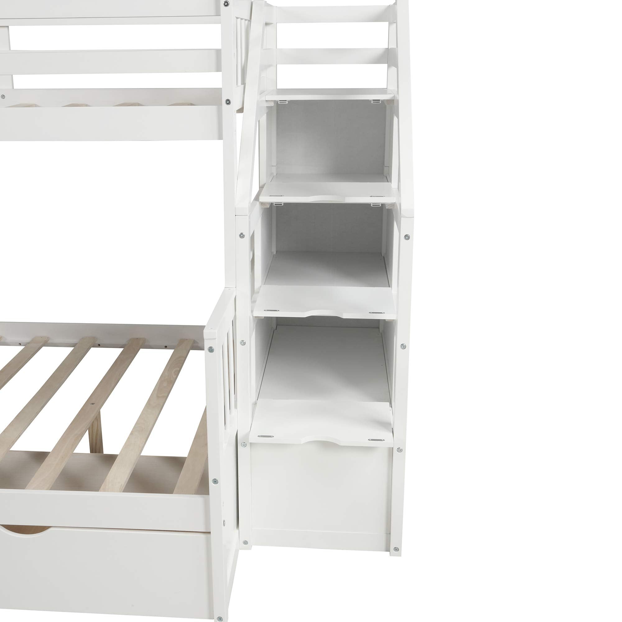 Bed Twin Over Full Size with Slide, Twin Over Full Bunk Bed with 3 Stairs