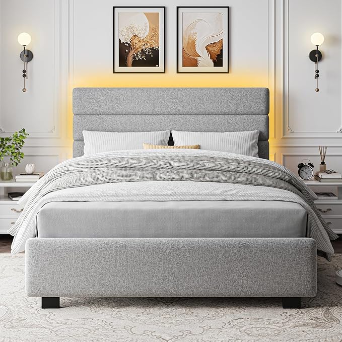 | Special Feature | No Box Spring Needed, Upholstered, Linen, LED Lighting, High Footboard |
