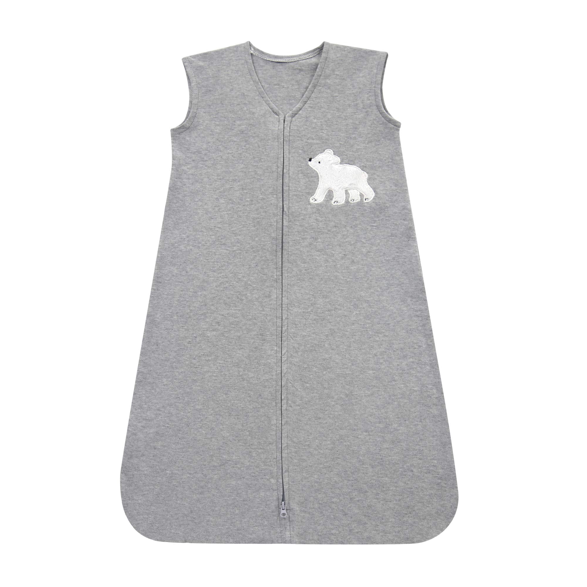 - Included in the bedding set is a 100% cotton wearable blanket with a little furry white bear on the front corner next to baby’s heart