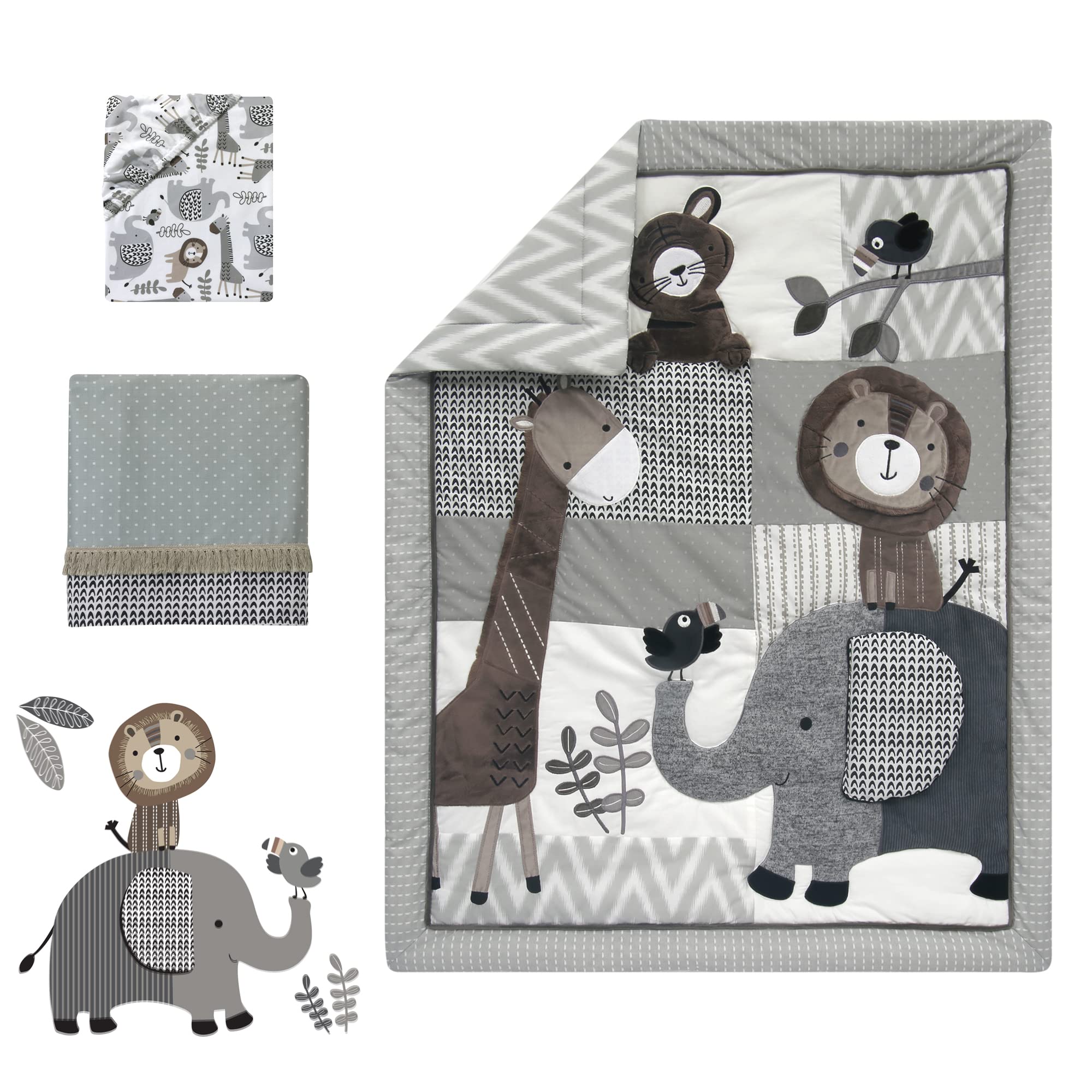 Urban Jungle 4-Piece Crib Bedding Set - Gray, Brown, White, Jungle