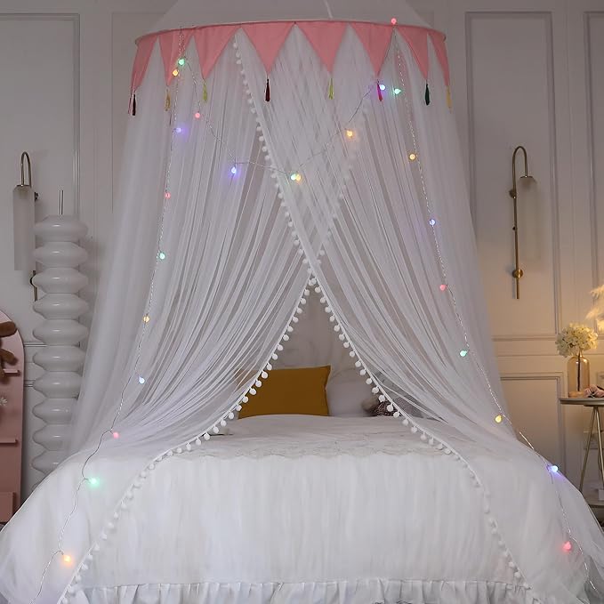 White Canopy Bed Curtains Princess Bed Canopy Scarf for Full/Queen Metal Bed Frame