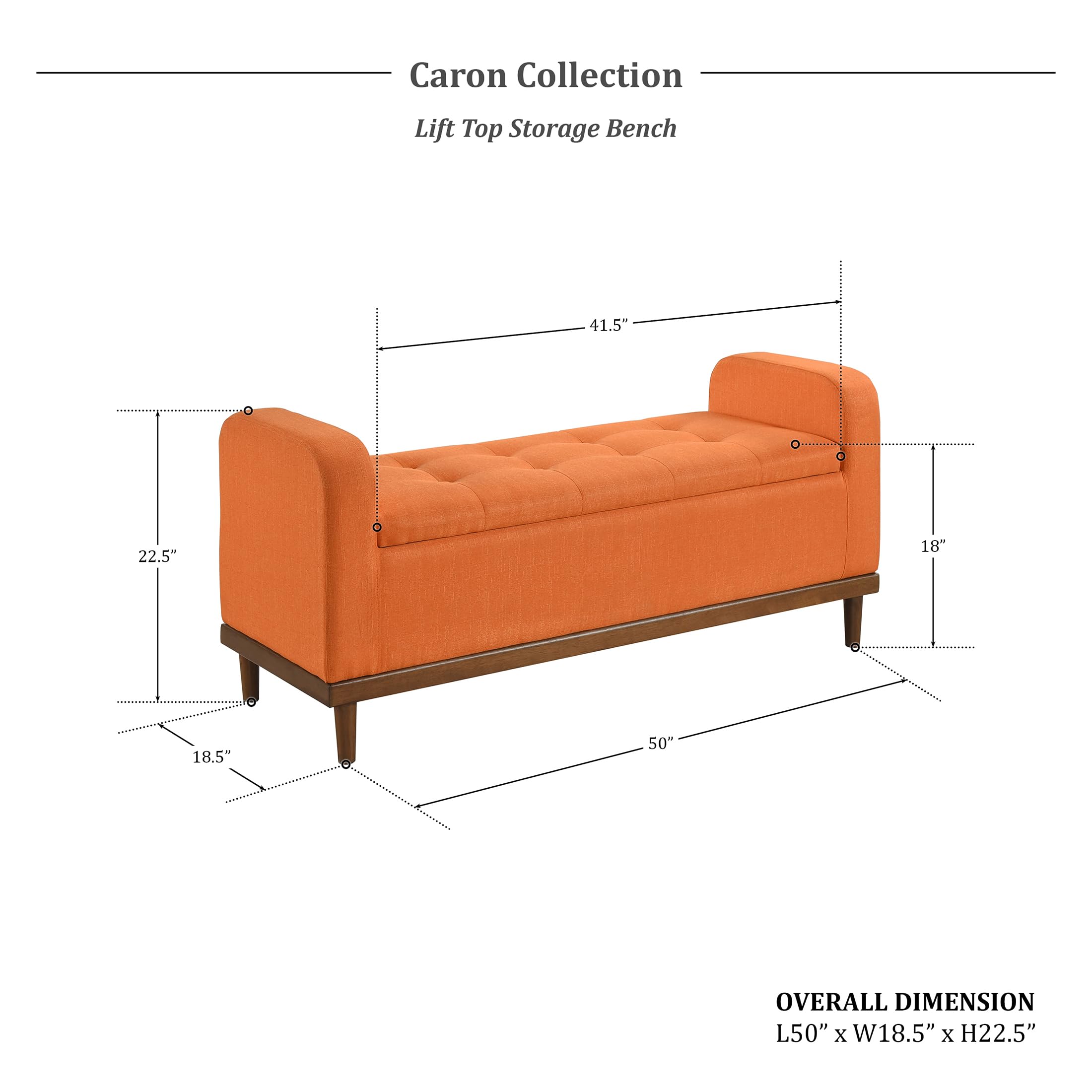- [Dimension & Assembly] Overall size: 50"W x 18.5"D x 22.5"H; Seat Width: 41.5"; Seat Depth: 18.5"; Seat Height: 18". All parts, tools, and instructions are packed into one box for easy assembly