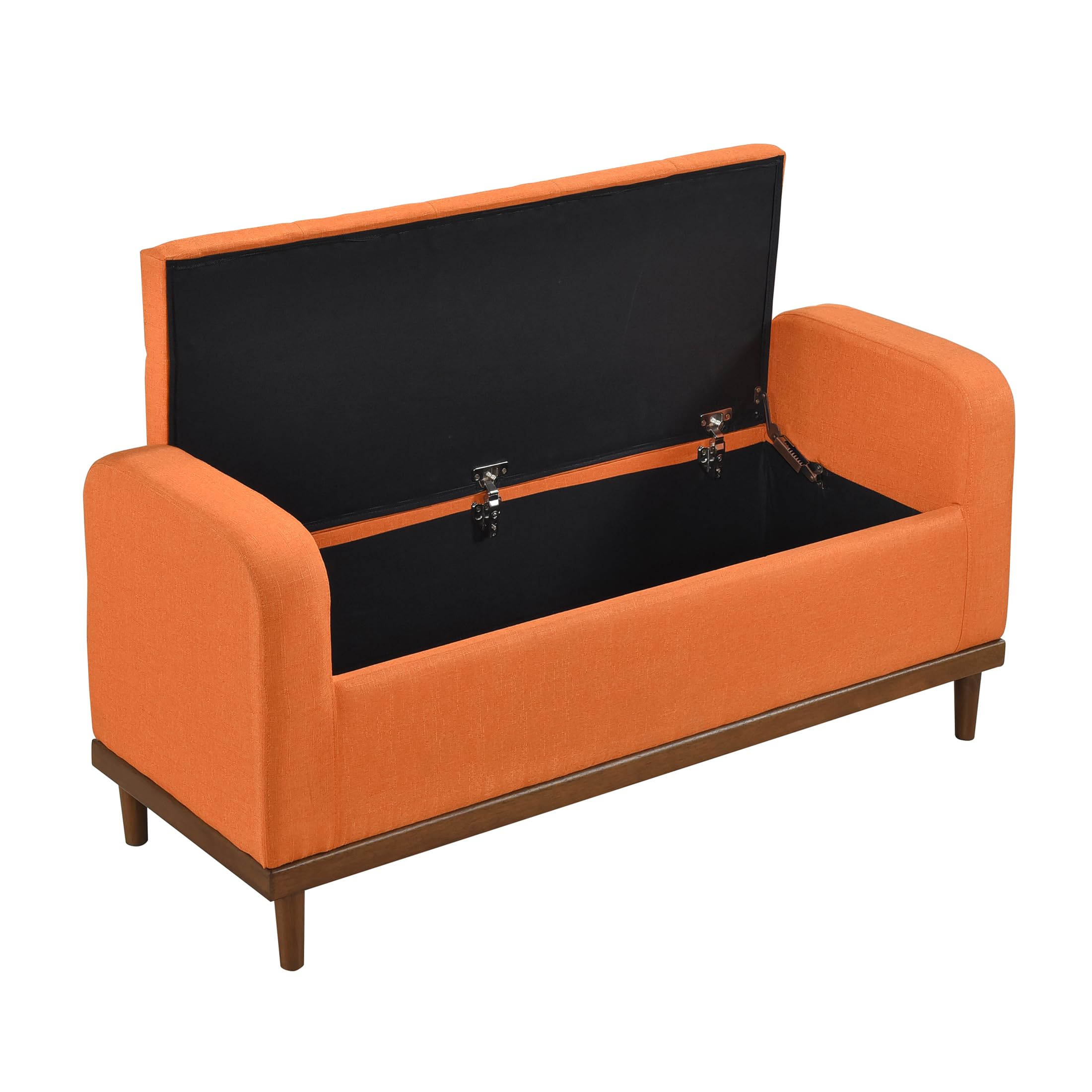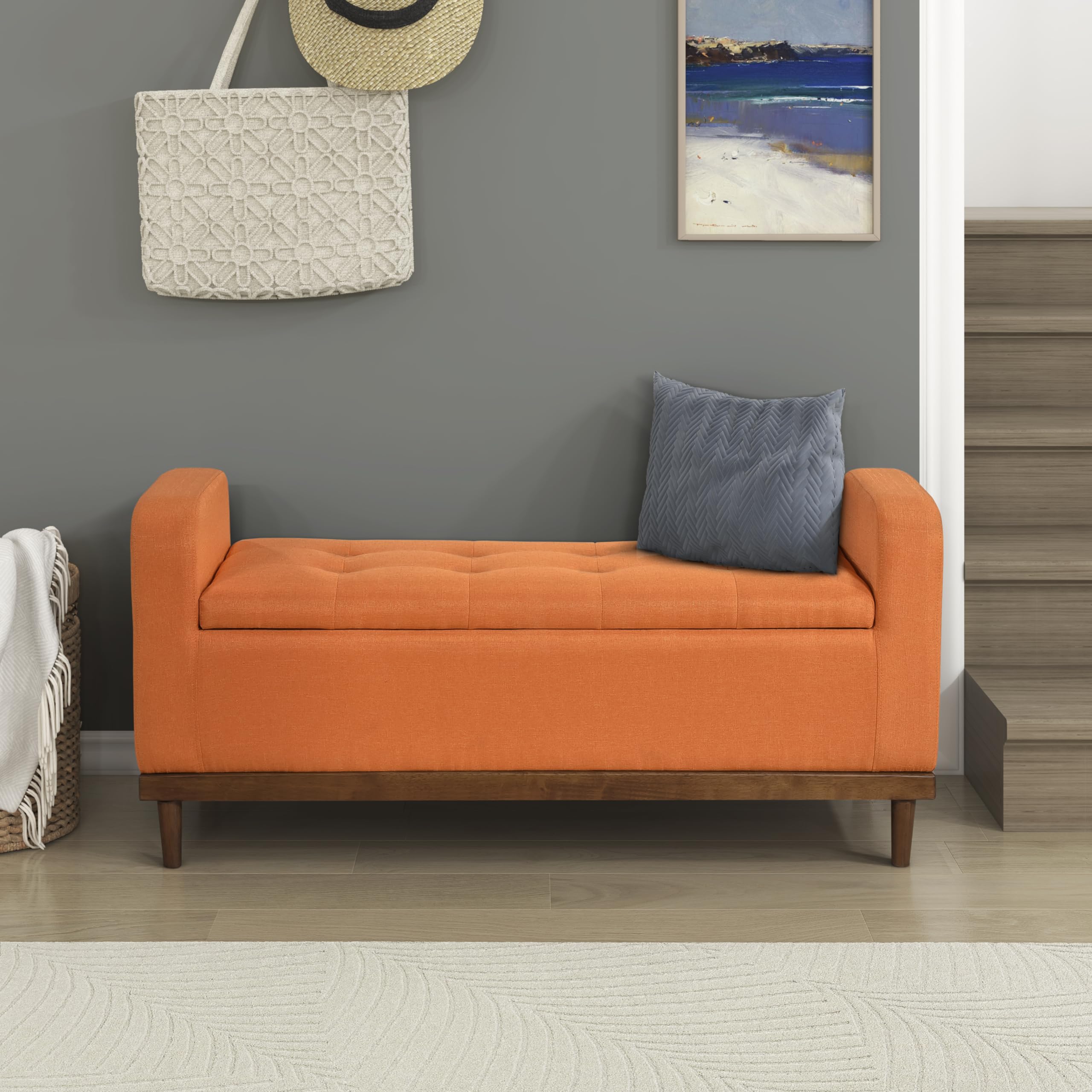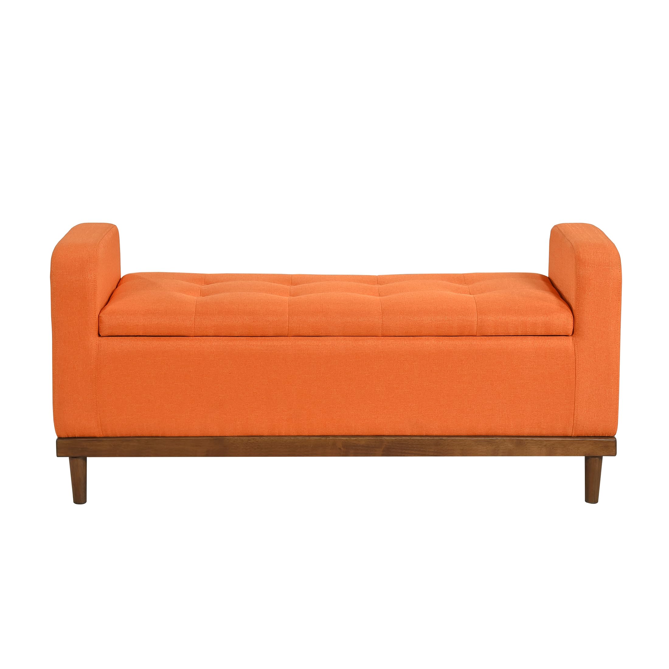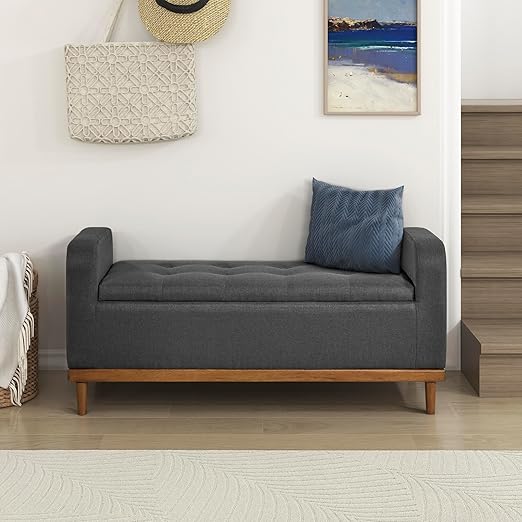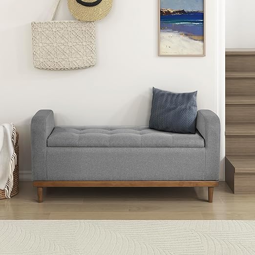 Armed Fabric Storage Bench, Button-Tufted Storage Ottoman Bench
