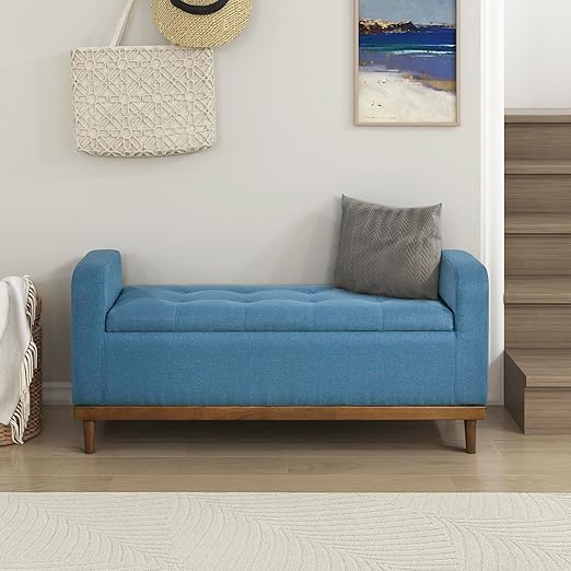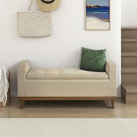 - [Contemporary Design] Featuring deep button tufting and beautifully streamlined arms, our storage ottoman bench offers the look, feel, and design of a truly contemporary piece. With a minimalistic yet refined structure, this piece brings out a simplistic style that emphasizes comfort and functionality