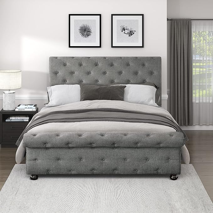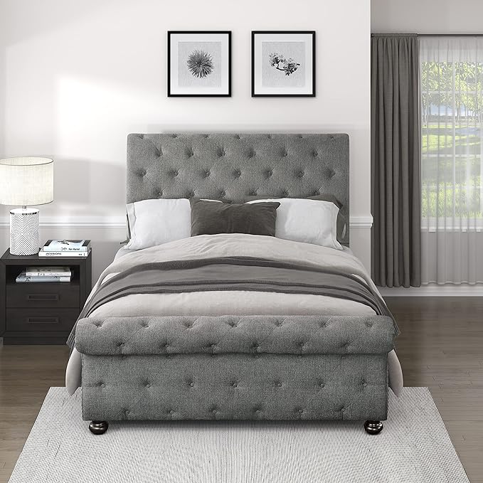 - Rolled Headboard and Footboard + Nailhead Trim + Button Tufting