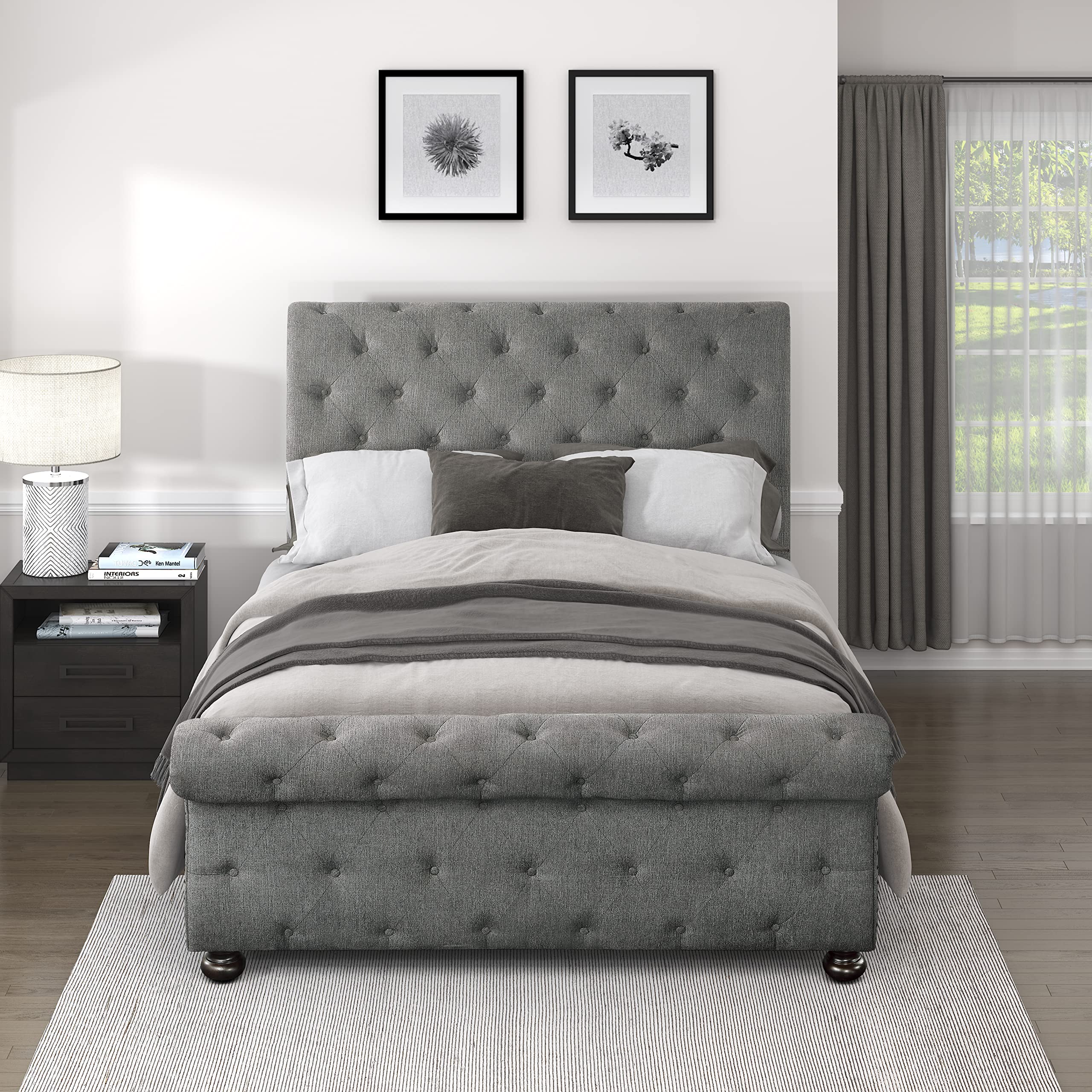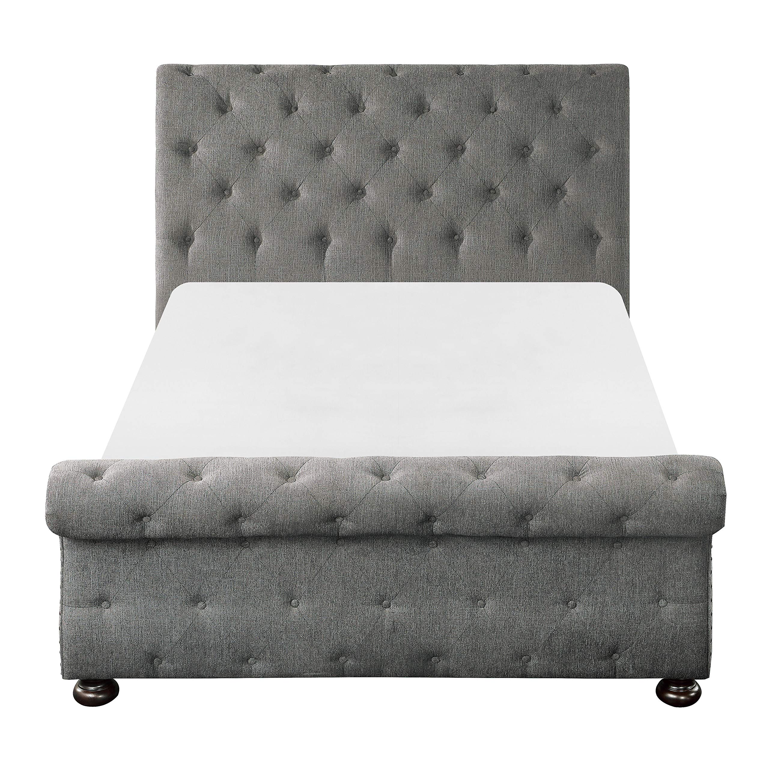 - Modern Traditional Look + Sleigh Bed Design + Dark Gray Chenille Fabric